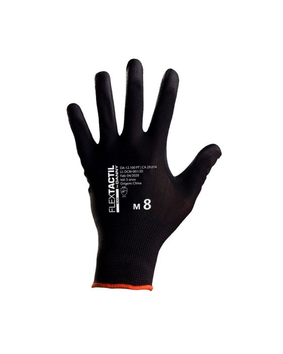 - Proteção sem perda de tato em atividades profissionais: A Luva Tricotada Flextáctil Preta Danny é confeccionada em nylon com recobrimento em poliuretano na palma, face palmar e ponta dos dedos, proporcionando excelente destreza, precisão nos movimentos e manuseio seguro de peças secas ou úmidas. Seu formato anatômico e punho elástico garantem ajuste perfeito às mãos, reduzindo a fadiga muscular mesmo em longos períodos de trabalho.- Alta resistência e desempenho técnico: Desenvolvida para suportar as exigências de diferentes setores, a luva oferece excelente performance abrasiva conforme norma EN 388 (3131A), além de resistência térmica de até 100°C em calor de contato. A cor preta aumenta sua durabilidade, disfarçando sujidades e prolongando sua vida útil em comparação às luvas tradicionais de malha.- Proteção antiestática e conforto superior: Com propriedade antiestática dissipativa, a luva protege equipamentos eletroeletrônicos contra descargas durante o manuseio. Seu dorso ventilado contribui para maior conforto térmico, enquanto a estrutura em nylon evita o desprendimento de fiapos, preservando a qualidade das peças manipuladas.- Versatilidade de uso: Indicada para indústrias metalmecânica, automobilística, moveleira, construção civil, montagem e manutenção em geral, sendo uma solução de excelente custo-benefício para quem busca proteção, precisão e conforto em um único equipamento de proteção individual.- Sobre a marca Danny: A Danny é referência nacional em Equipamentos de Proteção Individual (EPIs), reconhecida por sua inovação, qualidade e foco na segurança do trabalhador. Seus produtos seguem rigorosos padrões técnicos e são projetados para entregar confiabilidade, conforto e durabilidade no uso profissional.- Especificações técnicas:Cor: Preto com elástico laranja.Tamanho: M/8.Certificação: CA 29.014.Contém: 1 par.- Dimensões do produto:Comprimento: 14,9cm;Largura: 3cm;Altura: 3cm;Peso: 47g.* As especificações podem ser alteradas sem aviso prévio ** Imagem meramente ilustrativa.