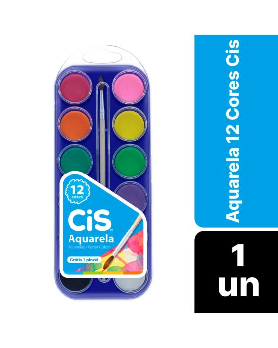 Características:O estojo de aquarela Cis é excelente para as crianças que gostam de colorir, além de desenvolver suas habilidades criativas e de coordenação, possui formulação atóxica o que torna um produto seguro para as crianças a partir de 3 anos usarem!A palheta de tinta acompanha um pincel para poder fazer os desenhos que são a base de água, ascores vivas deixarão os trabalhos de aquarela perfeitos.Detalhes:- Marca: CIS;- Modelo: Aquarela;- Referência: 52.7400;- Linha: Tintas para aquarela;- Cores: 12 Cores (Rosa, Amarelo claro, Verde claro, Roxo, Amarelo, Branco, Vermelho, Laranja, Verde escuro, Azul, Marrom e Preto);- Contém: 1 unidade do produto;- Idade indicada: a partir dos 3 anos;- Acompanha pincel;- Cores Vibrantes;- Não tóxico.Composição:- Resinas termoplásticas, corantes orgânicos e solventes.* As especificações podem ser alteradas sem aviso prévio ** Imagem meramente ilustrativa.