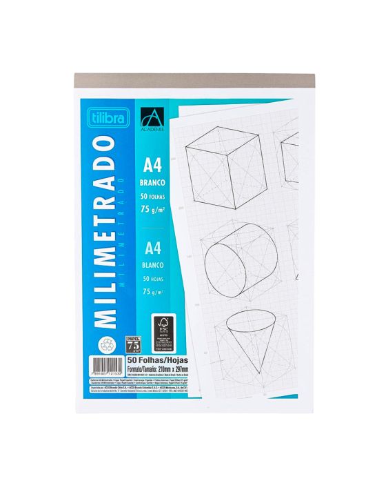 Características:O Caderno Colado Milimetrado A4 Branco Académie 50 Folhas possui 50 folhas em papel resistente e estrutura blocada que permite maior durabilidade durante o uso. É ideal para o desenvolvimento de desenhos técnicos e gráficos.A linha Académie foi desenvolvida para tornar as atividades do dia a dia mais práticas!Detalhes:- Marca: Tilibra.- Modelo: Académie.- Linha: Bloco Milimetrado.- Capa: Flexível.- Cor: Branco.- Quantidade de folhas: 50 folhas.- Folhas: Coladas, Com escala milimétrica.- Contém: 1 embalagem do bloco com 50 folhas.- Gramatura: 75g/m2.- Formato: A4.- Medidas: 210 x 297mm (21 x 29,7cm).- Produto com Certicação FSC.Ideal para: - É ideal para o desenvolvimento de desenhos técnicos e gráficos.* As especificações podem ser alteradas sem aviso prévio ** Imagem meramente ilustrativa