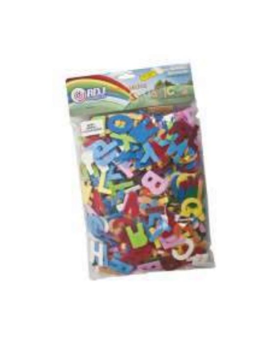 Em EVA (Etileno Vinil Acetato). - ABC Móvel - Referência: 103 - Marca: RDJ - Altura da letra: 34mm - Peso: 180grs - 572 peças (110 vogais + 462 consoantes) * As especificações podem ser alteradas sem aviso prévio ** Imagem meramente ilustrativa.