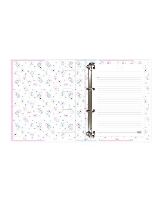 Características:O Caderno Argolado Cartonado Universitário com Elástico Happy 80 Folhas possui formato compacto, é leve e bastante funcional. Vem com folhas pautadas decoradas e bolsa plástica para guardar trabalhos e anotações. O fechamento em elástico garante segurança e praticidade.Detalhes:- Marca: Tilibra;- Modelo: Happy;- Referência: 305626;- Linha: Cadernos Argolados;- Tipo: Universitário;- Capa: Capa dura com relevo;- Contra capa: Contra capa decorada;- Quantidade de folhas: 80 folhas;- Contém: 1 unidade do produto com 80 folhas;- Formato: 200 x 275mm (20 x 27,5cm);- Gramatura: 56g/m2;- Fechamento: Com elástico- Folhas: pautadas decoradas;- Ferragens em metal;- Bolsa plástica;- Possui uma cartela de adesivos;- Produto certificado: FSC.Medidas:- Dimensões do produto: 200 x 275mm (10 x 27,5cm);- Gramatura: 56g/m2.* As especificações podem ser alteradas sem aviso prévio ** Imagem meramente ilustrativa