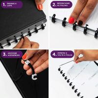 Características:O Caderno Black é uma versão nova do queridíssimo “Black Ecológico”, com acabamento em percalux. O modelo é um luxo que você precisa ter como material para organizar a sua rotina.Com o Caderno Inteligente Black, você tem a opção de tirar e colocar folhas sempre que precisar, adaptando a sua necessidade. Adicione folhas e customize-o com divisórias e acessórios, deixando ele ainda mais seu.Caderno inteligente, só Caderno inteligente ;)Detalhes:- Marca: Caderno Inteligente;- Modelo: Black;- Referência: CIGD4090;- Linha: Cadernos;- Cor: Preto com detalhes em preto e branco*;- Quantidade folhas: 80 folhas (60 pautadas e 20 lisas);- Capacidade de folhas: Até 140 folhas;- Contém: 1 unidade do produto;- Tamanho: 288mm X 217mm (28,8 x 21,7cm);- Gramatura: 90g/m2**;- Fechamento: em elástico na cor preto;- Possui uma folha de adesivos decorativos;- Produto customizável, permitindo adicionar alças ou trocar os discos pela cor que preferir;- Produto atóxico;- Produto original.Indústria Brasileira. | Validade: Indeterminada.Acompanha:- Capa e contracapa rígidas;- 01 bolsa plástica; - 01 folha de instrução de uso e manuseio, com refis e acessórios da marca disponíveis no verso;- 01 folha de identificação com calendário no verso;- 04 divisórias com abas para identificação (02 pretas e 02 transparentes);- 80 folhas offset 90g (60 folhas pautadas e 20 folhas lisas brancas para impressão);- 01 suporte com elástico para 01 caneta ou 01 lápis e discos M + elástico.Instruções de manuseio:- Segure a folha com os dedos próximos aos discos e puxe-a suavemente de cima para baixo;- Nunca puxe as folhas pela lateral, isso pode danificá-las e prejudicar o encaixe posterior;- Para recolocar uma folha, posicione-a sobre os discos e encaixe-a pressionando com os dedos;- Cada tamanho de disco comporta uma quantidade máxima de itens. Respeite esse limite para não ter problemas com folhas “se soltando”.Composição:- Tecido, Celulose, ABS, PP, Látex, Poliéster e Aço.Medidas:- Dimensões do produto: 28,8 x 22,5 x 2,3cm (CxLxA);- Peso: 551g.* Por se tratar de um produto artesanal, a tonalidade pode variar;** Considerando produtos e refis da marca Caderno Inteligente.ATENÇÃO! NÃO RECOMENDÁVEL PARA CRIANÇAS DE ATÉ 3 (TRÊS) ANOS POR CONTER PARTE(S) PEQUENA(S) QUE PODEM SER ENGOLIDA(S) OU ASPIRADA(S). * As especificações podem ser alteradas sem aviso prévio ** Imagem meramente ilustrativa.