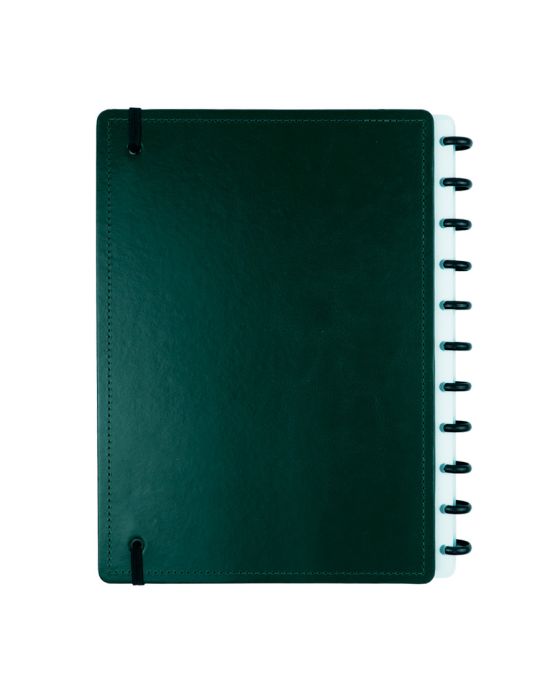 Características:O caderno que você tira e coloca folhas quando quiser ;)Para quem busca o minimalismo com um toque de elegância, o Dark Green é a escolha perfeita. Sua cor verde militar exala força e personalidade, enquanto seu design garante versatilidade para qualquer ocasião.Caderno inteligente, só Caderno inteligente ;)Detalhes:- Marca: Caderno Inteligente;- Modelo: Dark Green;- Referência: CIGD4167;- Linha: Cadernos;- Cor: Verde militar com detalhes em branco e preto*;- Quantidade folhas: 80 folhas (60 pautadas e 20 lisas);- Capacidade de folhas: Até 140 folhas;- Contém: 1 unidade do produto;- Tamanho: 288mm X 217mm (28,8 x 21,7cm);- Gramatura: 90g/m2**;- Fechamento: em elástico na cor preta;- Possui uma folha de adesivos decorativos;- Produto customizável, permitindo adicionar alças ou trocar os discos pela cor que preferir;- Produto atóxico;- Produto original.Indústria Brasileira. | Validade: Indeterminada.Acompanha:- Capa e contracapa rígidas;- 01 bolsa plástica; - 01 folha de instrução de uso e manuseio, com refis e acessórios da marca disponíveis no verso;- 01 folha de identificação com calendário no verso;- 04 divisórias com abas para identificação (02 pretas e 02 transparentes);- 80 folhas offset 90g (60 folhas pautadas e 20 folhas lisas brancas para impressão);- 01 suporte com elástico para 01 caneta ou 01 lápis e discos M + elástico.Instruções de manuseio:- Segure a folha com os dedos próximos aos discos e puxe-a suavemente de cima para baixo;- Nunca puxe as folhas pela lateral, isso pode danificá-las e prejudicar o encaixe posterior;- Para recolocar uma folha, posicione-a sobre os discos e encaixe-a pressionando com os dedos;- Cada tamanho de disco comporta uma quantidade máxima de itens. Respeite esse limite para não ter problemas com folhas “se soltando”.Composição:- Tecido, Celulose, ABS, PP, Látex, Poliéster e Aço.Medidas:- Dimensões do produto: 28,8 x 22,5 x 2,3cm (CxLxA);- Peso: 551g.* Por se tratar de um produto artesanal, a tonalidade pode variar;** Considerando produtos e refis da marca Caderno Inteligente.ATENÇÃO! NÃO RECOMENDÁVEL PARA CRIANÇAS DE ATÉ 3 (TRÊS) ANOS POR CONTER PARTE(S) PEQUENA(S) QUE PODEM SER ENGOLIDA(S) OU ASPIRADA(S). * As especificações podem ser alteradas sem aviso prévio ** Imagem meramente ilustrativa.