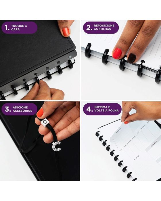 Características:A beleza da cor Azul com a elegância do prateado, desenvolvido e calculado a partir de muitas pesquisas, resultou no caderno infinito Deep Blue, perfeito para anotar tudo o que você precisa e não esquecer de nada - reuniões, tarefas, entregas e compromissos, absolutamente tudo!Caderno inteligente, só Caderno inteligente ;)Detalhes:- Marca: Caderno Inteligente;- Modelo: Deep Blue;- Referência: CIMD3313;- Linha: Cadernos;- Tipo: Médio;- Cor: Azul com detalhes em branco*;- Quantidade folhas: 80 folhas (60 pautadas e 20 lisas);- Capacidade de folhas: Até 140 folhas;- Contém: 1 unidade do produto;- Tamanho: 23mm X 175mm (23 x 17,5cm);- Gramatura: 90g/m2**;- Fechamento: em elástico na cor branca;- Possui uma folha de adesivos decorativos;- Produto customizável, permitindo adicionar alças ou trocar os discos pela cor que preferir;- Produto atóxico;- Produto original.Indústria Brasileira. | Validade: Indeterminada.Acompanha:- Capa e contracapa rígidas;- 01 folha de adesivos;- 01 bolsa plástica;- 01 folha de instrução de uso e manuseio, com refis e acessórios da marca disponíveis no verso;- 01 folha de identificação com calendário no verso;- 04 divisórias com abas para identificação (02 pretas e 02 transparentes);- 80 folhas offset 90g (60 folhas pautadas e 20 folhas lisas brancas para impressão);- 01 suporte com elástico para 01 caneta ou 01 lápis e discos M + elástico.Instruções de manuseio:- Segure a folha com os dedos próximos aos discos e puxe-a suavemente de cima para baixo;- Nunca puxe as folhas pela lateral, isso pode danificá-las e prejudicar o encaixe posterior;- Para recolocar uma folha, posicione-a sobre os discos e encaixe-a pressionando com os dedos;- Cada tamanho de disco comporta uma quantidade máxima de itens. Respeite esse limite para não ter problemas com folhas “se soltando”.Composição:- Tecido, Celulose, ABS, PP, Látex, Poliéster e Aço.Medidas:- Dimensões do produto: 25,5 x 20,2 x 2,1cm (CxLxA);- Peso: 551g.* Por se tratar de um produto artesanal, a tonalidade pode variar;** Considerando produtos e refis da marca Caderno Inteligente.ATENÇÃO! NÃO RECOMENDÁVEL PARA CRIANÇAS DE ATÉ 3 (TRÊS) ANOS POR CONTER PARTE(S) PEQUENA(S) QUE PODEM SER ENGOLIDA(S) OU ASPIRADA(S). * As especificações podem ser alteradas sem aviso prévio ** Imagem meramente ilustrativa.