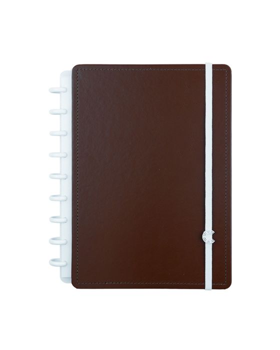 Características:Inspirado na intensidade e sofisticação do café Espresso, este caderno em um tom profundo e vivo de marrom é perfeito para anotações e planejamentos. Combinando elegância e funcionalidade, o ESPRESSO é seu companheiro ideal para transformar ideias em realidade com estilo e classe.Com o Caderno Inteligente Espresso, você tem a opção de tirar e colocar folhas sempre que precisar, adaptando a sua necessidade. Adicione folhas e customize-o com divisórias e acessórios, deixando ele ainda mais seu. Aproveite de todas as funções que somente os cadernos inteligentes podem oferecer a você ;)Caderno inteligente, só Caderno inteligente ;)Detalhes:- Marca: Caderno Inteligente;- Modelo: Espresso;- Referência: CIMD3303;- Linha: Cadernos;- Tipo: Médio;- Cor: Marrom com detalhes em branco*;- Quantidade folhas: 80 folhas (60 pautadas e 20 lisas);- Capacidade de folhas: Até 140 folhas;- Contém: 1 unidade do produto;- Tamanho: 23mm X 175mm (23 x 17,5cm);- Gramatura: 90g/m2**;- Fechamento: em elástico na cor branca;- Possui uma folha de adesivos decorativos;- Produto customizável, permitindo adicionar alças ou trocar os discos pela cor que preferir;- Produto atóxico;- Produto original.Indústria Brasileira. | Validade: Indeterminada.Acompanha:- Capa e contracapa rígidas;- 01 folha de adesivos;- 01 bolsa plástica;- 01 folha de instrução de uso e manuseio, com refis e acessórios da marca disponíveis no verso;- 01 folha de identificação com calendário no verso;- 04 divisórias com abas para identificação (02 pretas e 02 transparentes);- 80 folhas offset 90g (60 folhas pautadas e 20 folhas lisas brancas para impressão);- 01 suporte com elástico para 01 caneta ou 01 lápis e discos M + elástico.Instruções de manuseio:- Segure a folha com os dedos próximos aos discos e puxe-a suavemente de cima para baixo;- Nunca puxe as folhas pela lateral, isso pode danificá-las e prejudicar o encaixe posterior;- Para recolocar uma folha, posicione-a sobre os discos e encaixe-a pressionando com os dedos;- Cada tamanho de disco comporta uma quantidade máxima de itens. Respeite esse limite para não ter problemas com folhas “se soltando”.Composição:- Tecido, Celulose, ABS, PP, Látex, Poliéster e Aço.Medidas:- Dimensões do produto: 25,5 x 20,2 x 2,1cm (CxLxA);- Peso: 551g.* Por se tratar de um produto artesanal, a tonalidade pode variar;** Considerando produtos e refis da marca Caderno Inteligente.ATENÇÃO! NÃO RECOMENDÁVEL PARA CRIANÇAS DE ATÉ 3 (TRÊS) ANOS POR CONTER PARTE(S) PEQUENA(S) QUE PODEM SER ENGOLIDA(S) OU ASPIRADA(S). * As especificações podem ser alteradas sem aviso prévio ** Imagem meramente ilustrativa.