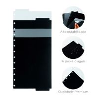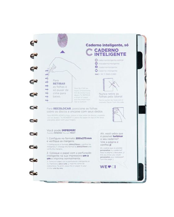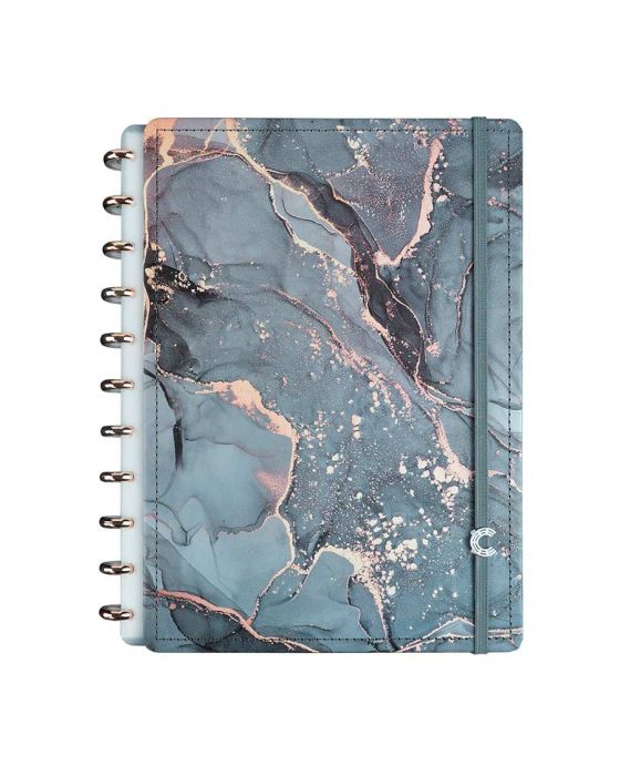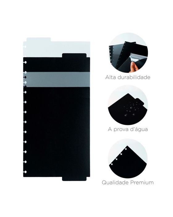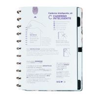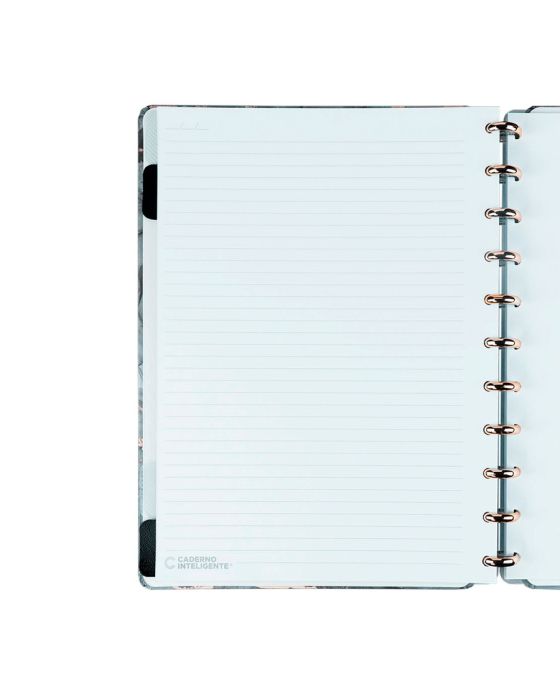 Características:Ônyx é um caderno sofisticado e elegante, na cor cinza chumbo com detalhes em dourado fosco que completam a beleza do seu novo BFF. Fabricado no Brasil, este caderno é o companheiro perfeito para os seus pensamentos nos momentos mais bonitos da vida.Com o seu formato fino, cabe facilmente na sua bolsa, tornando-o também um caderno de viagem perfeito!Caderno inteligente, só Caderno inteligente ;)Detalhes:- Marca: Caderno Inteligente;- Modelo: Onyx;- Referência: CIGD4131;- Linha: Cadernos;- Cor: Cinza com estampa de mármore com detalhes em branco, dourado e incolor*;- Quantidade folhas: 80 folhas (60 pautadas e 20 lisas);- Capacidade de folhas: Até 140 folhas;- Contém: 1 unidade do produto;- Tamanho: 288mm X 217mm (28,8 x 21,7cm);- Gramatura: 90g/m2**;- Fechamento: em elástico na cor cinza;- Possui uma folha de adesivos decorativos;- Produto customizável, permitindo adicionar alças ou trocar os discos pela cor que preferir;- Produto atóxico;- Produto original.Indústria Brasileira. | Validade: Indeterminada.Acompanha:- Capa e contracapa rígidas;- 01 bolsa plástica; - 01 folha de instrução de uso e manuseio, com refis e acessórios da marca disponíveis no verso;- 01 folha de identificação com calendário no verso;- 04 divisórias com abas para identificação (02 pretas e 02 transparentes);- 80 folhas offset 90g (60 folhas pautadas e 20 folhas lisas brancas para impressão);- 01 suporte com elástico para 01 caneta ou 01 lápis e discos M + elástico.Instruções de manuseio:- Segure a folha com os dedos próximos aos discos e puxe-a suavemente de cima para baixo;- Nunca puxe as folhas pela lateral, isso pode danificá-las e prejudicar o encaixe posterior;- Para recolocar uma folha, posicione-a sobre os discos e encaixe-a pressionando com os dedos;- Cada tamanho de disco comporta uma quantidade máxima de itens. Respeite esse limite para não ter problemas com folhas “se soltando”.Composição:- Tecido, Celulose, ABS, PP, Látex, Poliéster e Aço.Medidas:- Dimensões do produto: 28,8 x 22,5 x 2,3cm (CxLxA);- Peso: 551g.* Por se tratar de um produto artesanal, a tonalidade pode variar;** Considerando produtos e refis da marca Caderno Inteligente.ATENÇÃO! NÃO RECOMENDÁVEL PARA CRIANÇAS DE ATÉ 3 (TRÊS) ANOS POR CONTER PARTE(S) PEQUENA(S) QUE PODEM SER ENGOLIDA(S) OU ASPIRADA(S). * As especificações podem ser alteradas sem aviso prévio ** Imagem meramente ilustrativa.