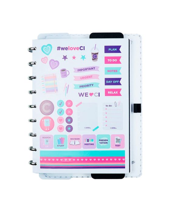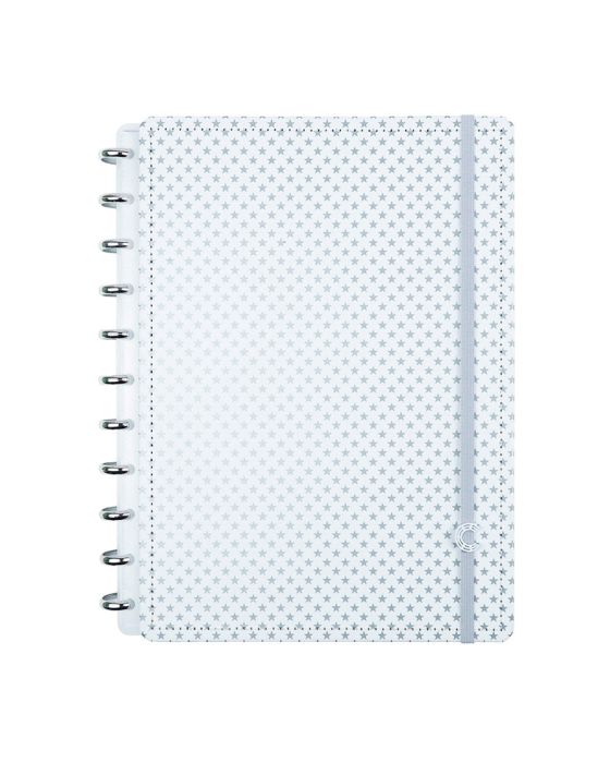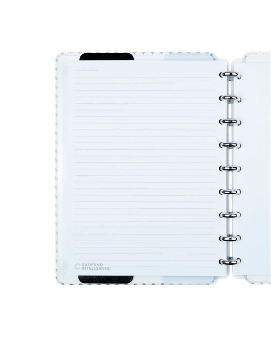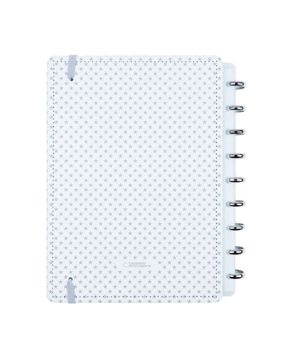 Características:O Super Star foi criado para aqueles que desejam destacar suas ideias com estilo e sofisticação. Com diferenciais exclusivos como alto relevo, high print e laminação na capa, o Super Star é perfeito para quem busca um produto de alta qualidade e design inovador.A capa com detalhes em alto relevo oferece uma textura única e um toque diferenciado, tornando seu caderno visualmente atraente e agradável. A impressão de alta definição garante cores vibrantes e nítidas, destacando ainda mais o design exclusivo do caderno, e a laminação proporciona um acabamento brilhante e sofisticado.Caderno inteligente, só Caderno inteligente ;)Detalhes:- Marca: Caderno Inteligente;- Modelo: Super Star;- Referência: CIGD4330;- Linha: Cadernos;- Cor: Branco com detalhes estampado em formato de estrela na cor prata e detalhes em prata e incolor*;- Quantidade folhas: 80 folhas (60 pautadas e 20 lisas);- Capacidade de folhas: Até 140 folhas;- Contém: 1 unidade do produto;- Tamanho: 288mm X 217mm (28,8 x 21,7cm);- Gramatura: 90g/m2**;- Fechamento: em elástico na cor preto;- Possui uma folha de adesivos decorativos;- Produto customizável, permitindo adicionar alças ou trocar os discos pela cor que preferir;- Produto atóxico;- Produto original.Indústria Brasileira. | Validade: Indeterminada.Acompanha:- Capa e contracapa rígidas;- 01 bolsa plástica; - 01 folha de instrução de uso e manuseio, com refis e acessórios da marca disponíveis no verso;- 01 folha de identificação com calendário no verso;- 04 divisórias com abas para identificação (02 pretas e 02 transparentes);- 80 folhas offset 90g (60 folhas pautadas e 20 folhas lisas brancas para impressão);- 01 suporte com elástico para 01 caneta ou 01 lápis e discos M + elástico.Instruções de manuseio:- Segure a folha com os dedos próximos aos discos e puxe-a suavemente de cima para baixo;- Nunca puxe as folhas pela lateral, isso pode danificá-las e prejudicar o encaixe posterior;- Para recolocar uma folha, posicione-a sobre os discos e encaixe-a pressionando com os dedos;- Cada tamanho de disco comporta uma quantidade máxima de itens. Respeite esse limite para não ter problemas com folhas “se soltando”.Composição:- Tecido, Celulose, ABS, PP, Látex, Poliéster e Aço.Medidas:- Dimensões do produto: 28,8 x 22,5 x 2,3cm (CxLxA);- Peso: 551g.* Por se tratar de um produto artesanal, a tonalidade pode variar;** Considerando produtos e refis da marca Caderno Inteligente.ATENÇÃO! NÃO RECOMENDÁVEL PARA CRIANÇAS DE ATÉ 3 (TRÊS) ANOS POR CONTER PARTE(S) PEQUENA(S) QUE PODEM SER ENGOLIDA(S) OU ASPIRADA(S). * As especificações podem ser alteradas sem aviso prévio ** Imagem meramente ilustrativa.