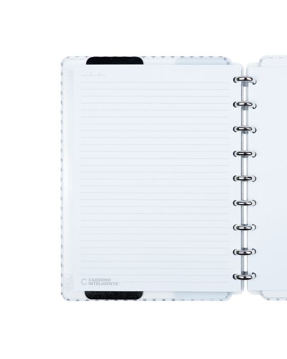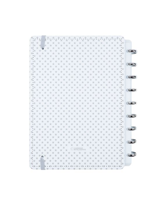 Características:O Super Star foi criado para aqueles que desejam destacar suas ideias com estilo e sofisticação. Com diferenciais exclusivos como alto relevo, high print e laminação na capa, o Super Star é perfeito para quem busca um produto de alta qualidade e design inovador.A capa com detalhes em alto relevo oferece uma textura única e um toque diferenciado, tornando seu caderno visualmente atraente e agradável. A impressão de alta definição garante cores vibrantes e nítidas, destacando ainda mais o design exclusivo do caderno, e a laminação proporciona um acabamento brilhante e sofisticado.Caderno inteligente, só Caderno inteligente ;)Detalhes:- Marca: Caderno Inteligente;- Modelo: Super Star;- Referência: CIMD3330;- Linha: Cadernos;- Tipo: Médio;- Cor: Branco com detalhes estampado em formato de estrela na cor prata e detalhes em prata e incolor*;- Quantidade folhas: 80 folhas (60 pautadas e 20 lisas);- Capacidade de folhas: Até 140 folhas;- Contém: 1 unidade do produto;- Tamanho: 23mm X 175mm (23 x 17,5cm);- Gramatura: 90g/m2**;- Fechamento: em elástico na cor cinza;- Possui uma folha de adesivos decorativos;- Produto customizável, permitindo adicionar alças ou trocar os discos pela cor que preferir;- Produto atóxico;- Produto original.Indústria Brasileira. | Validade: Indeterminada.Acompanha:- Capa e contracapa rígidas;- 01 folha de adesivos;- 01 bolsa plástica;- 01 folha de instrução de uso e manuseio, com refis e acessórios da marca disponíveis no verso;- 01 folha de identificação com calendário no verso;- 04 divisórias com abas para identificação (02 pretas e 02 transparentes);- 80 folhas offset 90g (60 folhas pautadas e 20 folhas lisas brancas para impressão);- 01 suporte com elástico para 01 caneta ou 01 lápis e discos M + elástico.Instruções de manuseio:- Segure a folha com os dedos próximos aos discos e puxe-a suavemente de cima para baixo;- Nunca puxe as folhas pela lateral, isso pode danificá-las e prejudicar o encaixe posterior;- Para recolocar uma folha, posicione-a sobre os discos e encaixe-a pressionando com os dedos;- Cada tamanho de disco comporta uma quantidade máxima de itens. Respeite esse limite para não ter problemas com folhas “se soltando”.Composição:- Tecido, Celulose, ABS, PP, Látex, Poliéster e Aço.Medidas:- Dimensões do produto: 25,5 x 20,2 x 2,1cm (CxLxA);- Peso: 551g.* Por se tratar de um produto artesanal, a tonalidade pode variar;** Considerando produtos e refis da marca Caderno Inteligente.ATENÇÃO! NÃO RECOMENDÁVEL PARA CRIANÇAS DE ATÉ 3 (TRÊS) ANOS POR CONTER PARTE(S) PEQUENA(S) QUE PODEM SER ENGOLIDA(S) OU ASPIRADA(S). * As especificações podem ser alteradas sem aviso prévio ** Imagem meramente ilustrativa.