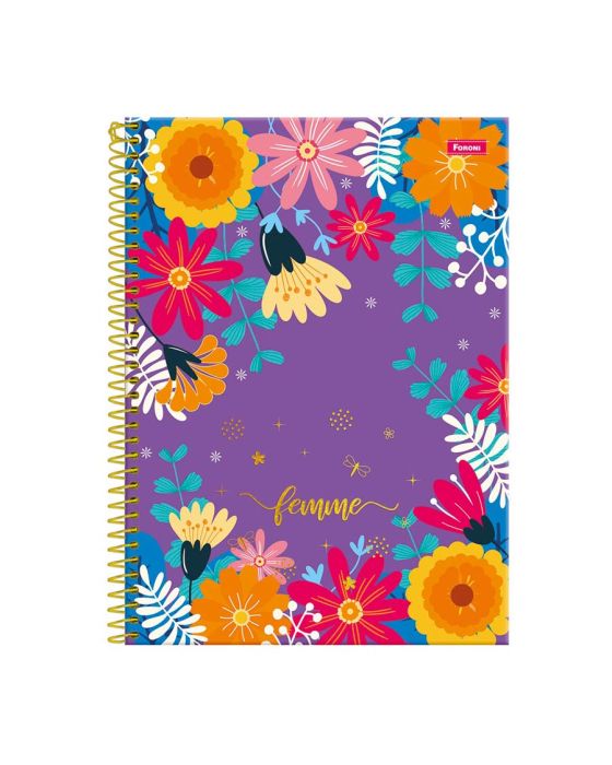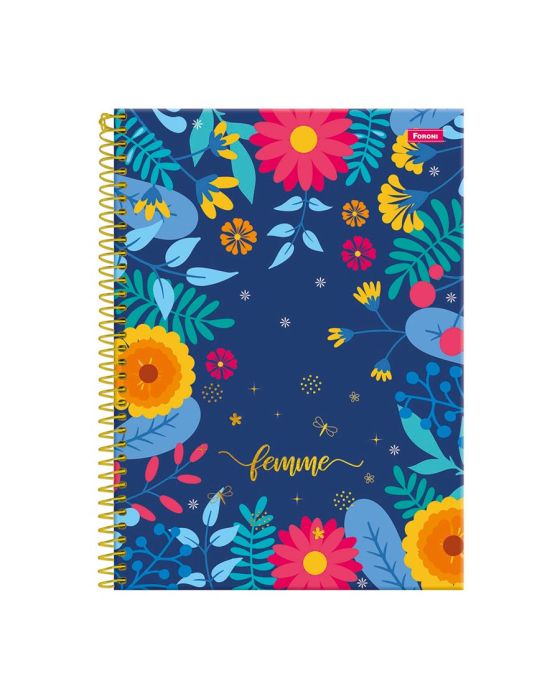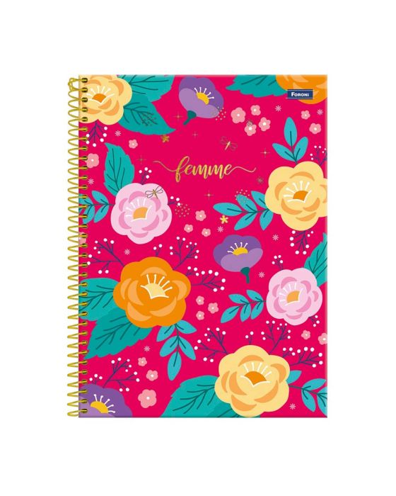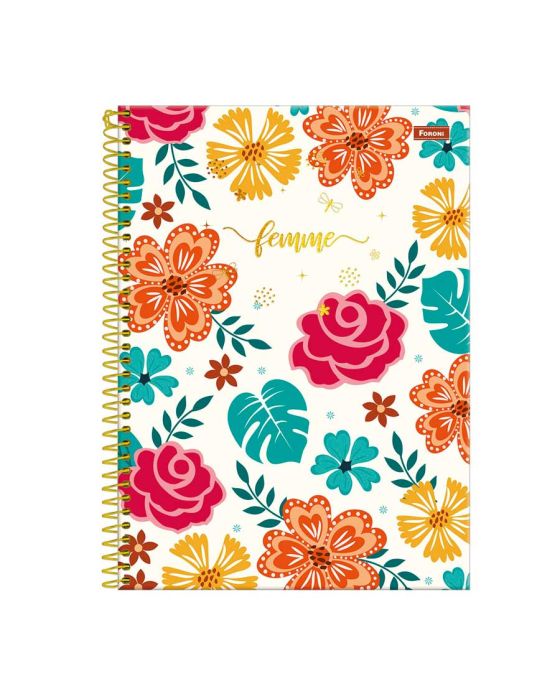 Características:Inspirada na beleza da natureza, o Caderno Universitário Capa Dura Femme é um respiro de ar fresco durante a rotina. Suas flores e folhagens harmônicas agradam facilmente diversos públicos.Detalhes:- Marca: Foroni;- Modelo: Femme;- Referência: 3182265;- Linha: Cadernos Espiral;- Tipo: Universitário;- Capa: Capa Dura com laminação fosca e Hot Stamping (Estampas sortidas);- Contra capa: Contra capa decorada;- Quantidade de folhas: 160 folhas;- Quantidade de matérias: 10 matérias;- Contém: 1 unidade do produto com 160 folhas;- Formato: 200 x 275mm (20 x 27,5cm);- Gramatura: 56g/m2;- Espiral: Dourado;- Folhas: pautadas cinza;- Possui uma bolsa plástica;- Possui uma cartela de adesivos especiais;- Índice/separador de matérias decorado;- Miolo;- Produto certificado: FSC.Medidas:- Dimensões do produto: 200 x 275mm (20 x 27,5cm);- Gramatura: 56g/m2.Estampas sortidas, será enviado de acordo com a disponibilidade do estoque. Não é possível escolher uma estampa específica.* As especificações podem ser alteradas sem aviso prévio ** Imagem meramente ilustrativa