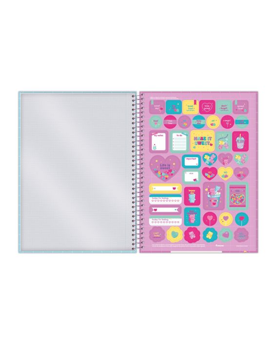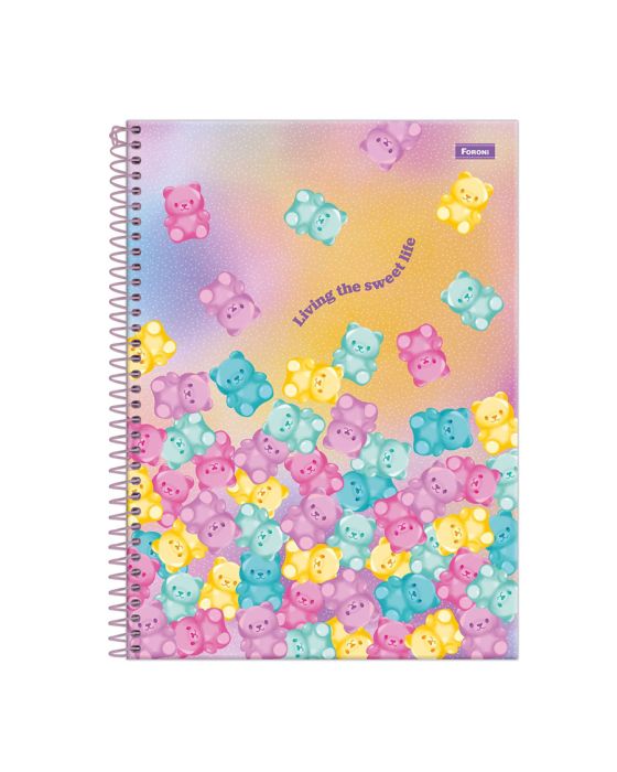 Características:O Caderno Universitário Capa Dura Sugar Rush foi idealizado pensando em trazer muita doçura e meiguice em suas capas.Detalhes:- Marca: Foroni;- Modelo: Sugar Rush;- Referência: 3169668;- Linha: Cadernos Espiral;- Tipo: Universitário;- Capa: Capa Dura com laminação fosca e Super Hot Stamping (Estampas sortidas);- Contra capa: Contra capa decorada;- Quantidade de folhas: 80 folhas;- Quantidade de matérias: 1 matéria;- Contém: 1 unidade do produto com 80 folhas;- Formato: 200 x 275mm (20 x 27,5cm);- Gramatura: 56g/m2;- Espiral: Lilás;- Folhas: pautadas cinza decorada;- Possui bolsa plástica transparente;- Possui uma cartela de adesivos especiais;- Índice/separador de matérias decorado;- Miolo;- Folhas destacáveis;- Produto certificado: FSC.Composição:- Capa: Fabricado em papelão e papel couché;- Folhas Internas: Papel Offset 56g/m2.Medidas:- Dimensões do produto: 200 x 275mm (20 x 27,5cm);- Gramatura: 56g/m2.Estampas sortidas, será enviado de acordo com a disponibilidade do estoque. Não é possível escolher uma estampa específica.* As especificações podem ser alteradas sem aviso prévio ** Imagem meramente ilustrativa.