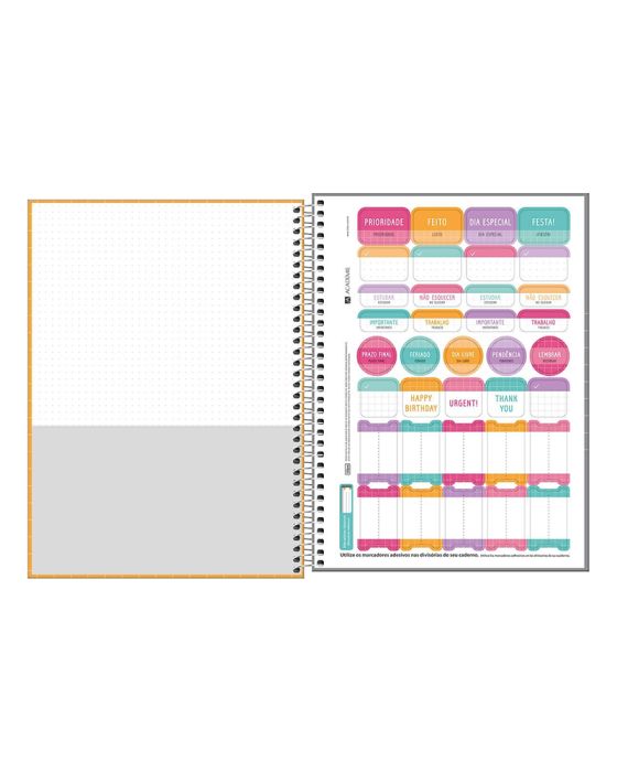 Características:- Bolsa interna decorada- Capa dura com detalhe em verniz- Parte interna da capa decorada- Espiral colorido- Folha de adesivos- Índice decorado- Miolo pautado decorado- Número de matérias: 1 matéria- Formato 200mm x 275mm- 80 folhas Gramatura 56 g/m²- Produto certificado FSC* As especificações podem ser alteradas sem aviso prévio** Imagem meramente ilustrativa