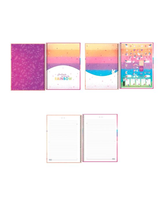 Características:O Caderno Espiral Capa Dura Universitário 1 Matéria Blink 80 Folhas possui capa dura com detalhe metalizado, parte interna decorada, bolsa de papel decorada para guardar trabalhos e anotações, folha com adesivos funcionais, folhas pautadas decoradas e espiral colorido. Ideal para o dia a dia na escola ou na faculdade.Detalhes:- Marca: Tilibra;- Modelo: Blink;- Referência: 234745;- Linha: Cadernos Espiral;- Tipo: Universitário;- Capa: Capa com detalhe metalizado (Estampas sortidas);- Contra capa: Contra capa decorada;- Quantidade de folhas: 80 folhas;- Quantidade de matérias: 1 matéria;- Contém: 1 unidade do produto com 80 folhas;- Formato: 200 x 275mm (20 x 27,5cm);- Gramatura: 56g/m2;- Espiral: Rose Gold;- Folhas: pautadas decoradas ;- Bolsa de papel dupla decorada;- Possui uma cartela de adesivos funcionais;- Índice/separador de matérias decorados;- Miolo;- Produto certificado: FSC.Medidas:- Dimensões do produto: 200 x 275mm (20 x 27,5cm);- Gramatura: 56g/m2.Estampas sortidas, será enviado de acordo com a disponibilidade do estoque. Não é possível escolher uma estampa específica.* As especificações podem ser alteradas sem aviso prévio ** Imagem meramente ilustrativa