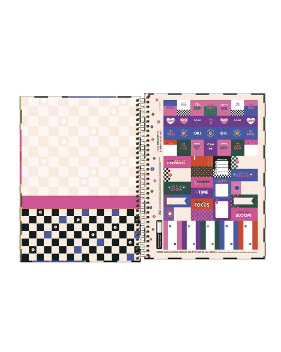 Características:O Caderno Espiral Capa Dura Universitário 1 Matéria Check Pop 80 Folhas possui capa dura com a parte interna decorada, bolsa de papel decorada para guardar trabalhos e anotações, folha com adesivos funcionais, folhas pautadas decoradas e espiral colorido. Ideal para o dia a dia na escola ou na faculdade.Detalhes:- Marca: Tilibra;- Modelo: Check Pop;- Referência: 342734;- Linha: Cadernos Espiral;- Tipo: Universitário;- Capa: Capa Dura com detalhe metalizado (Estampas sortidas);- Contra capa: Contra capa decorada;- Quantidade de folhas: 80 folhas;- Quantidade de matérias: 1 matéria;- Contém: 1 unidade do produto com 80 folhas;- Formato: 200 x 275mm (20 x 27,5cm);- Gramatura: 56g/m2;- Cor Espiral: Dourado;- Folhas: pautadas decoradas e destacáveis;- Bolsa de papel dupla decorada;- Possui uma cartela de adesivos funcionais;- Índice/separador de matérias decorados;- Miolo;- Produto certificado: FSC.Composição; - Capa: Capa em papelão e papel Couché;- Folhas Internas: Papel Offset 56g/m2.Medidas:- Formato: 200 x 275mm (20 x 27,5cm);- Gramatura: 56g/m². Capas sortidas, será enviado de acordo com a disponibilidade do estoque. Não é possível escolher uma capa específica.* As especificações podem ser alteradas sem aviso prévio ** Imagem meramente ilustrativa.