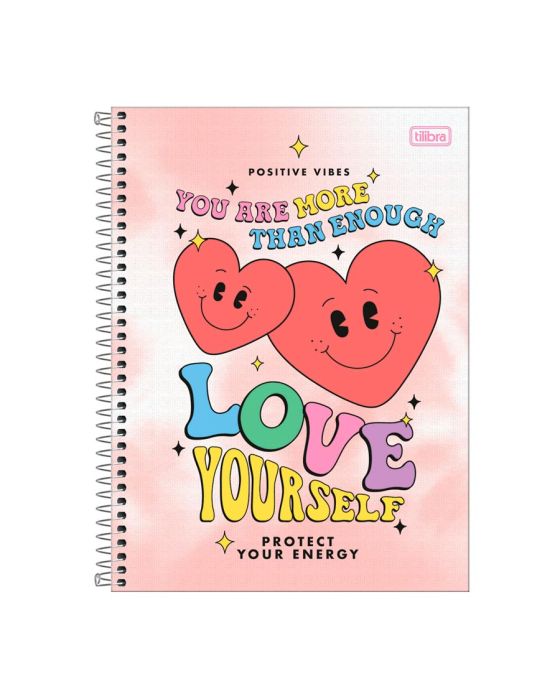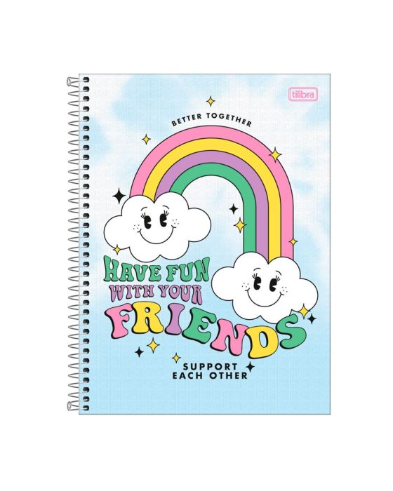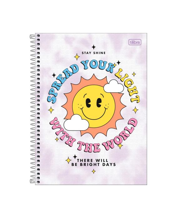 Características:O Caderno Espiral Capa Dura Universitário 10 Matérias Good Vibes 160 Folhas possui capa dura com a parte interna decorada, bolsa de papel decorada para guardar trabalhos e anotações, folha com adesivos funcionais e folhas pautadas. Ideal para o dia a dia na escola ou na faculdade.Detalhes:- Marca: Tilibra;- Modelo: Good Vibes;- Referência: 323837;- Linha: Cadernos Espiral;- Tipo: Universitário;- Capa: Capa com detalhe metalizado (Estampas sortidas);- Contra capa: Contra capa decorada;- Quantidade de folhas: 80 folhas;- Quantidade de matérias: 1 matéria;- Contém: 1 unidade do produto com 80 folhas;- Formato: 200 x 275mm (20 x 27,5cm);- Gramatura: 56g/m2;- Espiral: Dourado;- Folhas: pautadas decoradas e destacáveis;- Bolsa de papel dupla decorada;- Possui uma cartela de adesivos funcionais;- Índice/separador de matérias decorados;- Miolo;- Produto certificado: FSC.Medidas:- Dimensões do produto: 200 x 275mm (20 x 27,5cm);- Gramatura: 56g/m2.Estampas sortidas, será enviado de acordo com a disponibilidade do estoque. Não é possível escolher uma estampa específica.* As especificações podem ser alteradas sem aviso prévio ** Imagem meramente ilustrativa