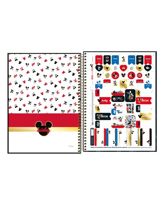 Características:O Caderno Espiral Capa Dura Universitário 1 Matéria Mickey 80 Folhas possui capa dura com a parte interna decorada, bolsa de papel decorada para guardar trabalhos e anotações, folha com adesivos funcionais, folhas pautadas decoradas e espiral colorido.Ideal para o dia a dia na escola ou na faculdade.- Bolsa de papel decorada- Capa dura com detalhe metalizado- Espiral colorido- Folha de adesivos- Folhas pautadas decoradas- Número de matérias: 1 matéria- Produto certificado: FSC- Formato: 200mm x 275mm- Gramatura: 56 g/m²- Número de folhas: 80 folhas* As especificações podem ser alteradas sem aviso prévio** Imagem meramente ilustrativa