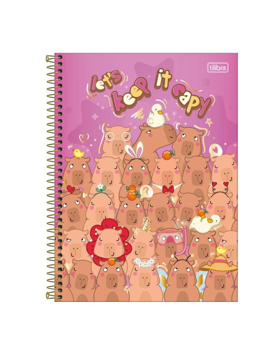 Características:O Caderno Espiral Capa Dura Universitário 1 Matéria Capyclub 80 Folhas da Tilibra é perfeito para você que busca uma opção para organização da rotina de estudos com ilustrações divertidas de capivara.Use este modelo, com capa dura com detalhe metalizado e a parte interna decorada, bolsa de papel para guardar trabalhos, adesivos funcionais, folhas pautadas e decoradas e espiral colorido, para anotar as aulas, fazer resumos, listar tarefas e organizar as ideias de forma prática e eficiente.Adquira já o seu caderno universitário Tilibra!Detalhes:- Marca: Tilibra;- Modelo: Capyclub;- Referência: 359203;- Linha: Cadernos Espiral;- Tipo: Universitário;- Capa: Capa Dura com detalhe metalizado (Estampas sortidas);- Contra capa: Contra capa decorada;- Quantidade de folhas: 80 folhas;- Quantidade de matérias: 1 matéria;- Contém: 1 unidade do produto com 80 folhas;- Formato: 200 x 275mm (20 x 27,5cm);- Gramatura: 56g/m2;- Cor Espiral: Dourado;- Folhas: pautadas na cor cinza decorada;- Cor das folhas: Branca;- Bolsa de papel dupla decorada;- Possui uma cartela de adesivos funcionais;- Índice/separador de matéria decorado;- Miolo;- Produto certificado: FSC.Composição;- Capa: Capa em papelão e papel Couché;- Folhas Internas: Papel Offset 56g/m2.Medidas:- Formato: 200 x 275mm (20 x 27,5cm);- Gramatura: 56g/m².Estampas sortidas, será enviado de acordo com a disponibilidade do estoque. Não é possível escolher uma capa específica.* As especificações podem ser alteradas sem aviso prévio ** Imagem meramente ilustrativa.