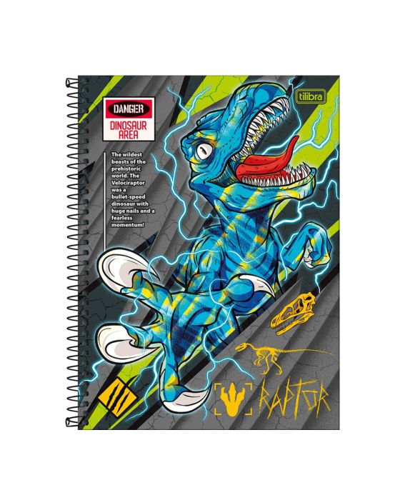 Características:O Caderno Espiral Capa Dura Universitário 1 Matéria Raptor 80 Folhas possui capa dura com a parte interna decorada, bolsa plástica para guardar trabalhos e anotações, folha com adesivos funcionais, folhas pautadas e espiral colorido. Ideal para o dia a dia na escola ou na faculdade.As folhas desse caderno universitário são compatíveis com o aplicativo Tilibra Connect, disponível gratuitamente na Apple Store e Google Play. Com o Tilibra Connect, você pode digitalizar suas anotações de forma rápida e eficiente, criar um quiz com perguntas e respostas, gamificando seus estudos com objetivo de torná-los mais estimulantes e, ainda, elaborar e revisar fichas para facilitar o aprendizado.Detalhes:- Marca: Tilibra;- Modelo: Raptor;- Referência: 309648;- Linha: Cadernos Espiral;- Tipo: Universitário;- Capa: Capa Dura com detalhe metalizado (Estampas sortidas);- Contra capa: Contra capa decorada;- Quantidade de folhas: 80 folhas;- Quantidade de matérias: 1 matéria;- Contém: 1 unidade do produto com 80 folhas;- Formato: 200 x 275mm (20 x 27,5cm);- Gramatura: 56g/m2;- Cor Espiral: Preto;- Folhas: pautadas na cor cinza;- Cor das folhas: Branca;- Bolsa plástica;- Possui uma cartela de adesivos funcionais;- Índice/separador de matérias decorados;- Miolo App;- Pode ser usado com o aplicativo Tilibra Connect (disponível na App Store e Google Play);- Produto certificado: FSC.Composição;- Capa: Capa em papelão e papel Couché;- Folhas Internas: Papel Offset 56g/m2.Medidas:- Formato: 200 x 275mm (20 x 27,5cm);- Gramatura: 56g/m².Capas sortidas, será enviado de acordo com a disponibilidade do estoque. Não é possível escolher uma capa específica.* As especificações podem ser alteradas sem aviso prévio ** Imagem meramente ilustrativa.