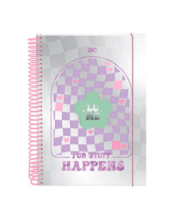 Características:O caderno ideal para acompanhar todo o conteúdo dos estudos e compacto para ficar mais confortável. Inclusive é perfeito para quem quer usar o caderno apenas para as anotações diárias. Tem capa dura e acabamento diferenciado, tais como: espiral em plástico que não entorta e nem machuca; fechamento em elástico podendo assegurar alguns papéis soltos dentro do caderno e evitar também que abra e amasse as folhas.Detalhes:- Marca: DAC;- Modelo: Lume;- Referência: 4384;- Linha: Cadernos Colegial;- Capa: Capa dura com laminação brilho e hotstamping;- Contra capa: Contra capa simples;- Formato: 177 x 240mm (17,7 x 24cm);- Tamanho: Colegial;- Quantidade de páginas: 160 folhas;- Quantidade de matérias: 10 matérias;- Contém: 1 unidade do produto com 160 páginas;- Espiral: rosa;- Fechamento: Em elástico;- 10 divisórias em papel, todas removíveis com a possibilidade de remanejar para onde quiser.Composição:- Papel Offset.Medida:- 17,7 x 24cm (CxL).* As especificações podem ser alteradas sem aviso prévio ** Imagem meramente ilustrativa.