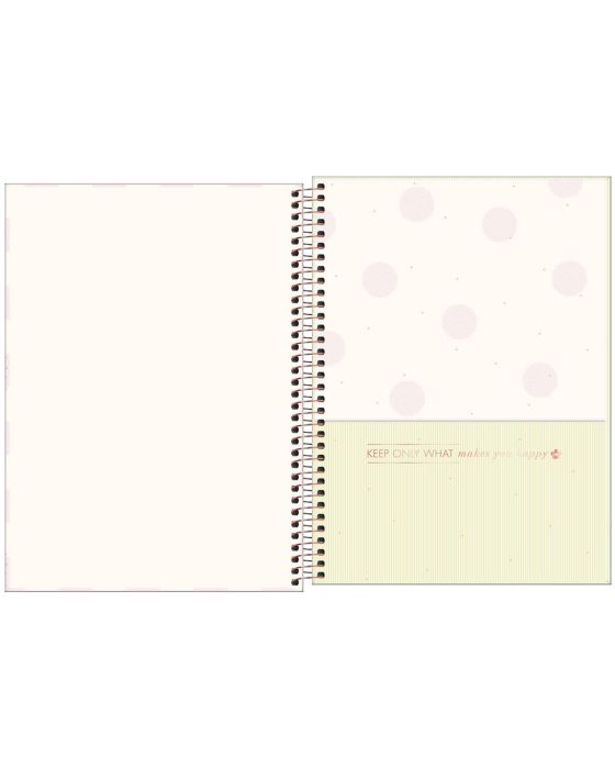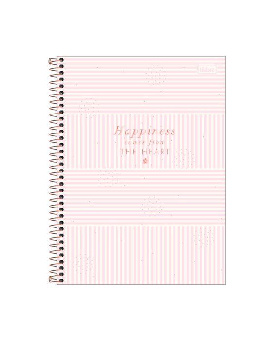 Características:O Caderno Espiral Capa Dura Colegial 10 Matérias Soho 160 Folhas possui formato inovador e compacto, ideal para quem gosta de praticidade. Possui 160 folhas divididas em 10 matérias, capa dura com detalhe metalizado, parte interna decorada, bolsa de papel decorada, folha com adesivos funcionais e folhas pautadas destacáveis.Detalhes:- Marca: Tilibra;- Modelo: Soho;- Referência: 291358;- Linha: Cadernos Espiral;- Tipo: Colegial;- Capa: Capa com detalhe metalizado e relevo (Estampas sortidas);- Contra capa: Contra capa decorada;- Quantidade de folhas: 160 folhas;- Quantidade de matérias: 10 matérias- Contém: 1 unidade do produto com 160 folhas;- Formato: 177 x 240mm (17,7 x 24cm);- Gramatura: 56g/m2;- Espiral: Rose Gold;- Folhas: pautadas decoradas e destacáveis;- Bolsa de papel dupla decorada;- Possui uma cartela de adesivos;- Índice/separador de matérias decorados- Miolo;- Produto certificado: FSC.Medidas:- Dimensões do produto: 177 x 240mm (17,7 x 24cm);- Gramatura: 56g/m2.Estampas sortidas, será enviado de acordo com a disponibilidade do estoque. Não é possível escolher uma estampa específica.* As especificações podem ser alteradas sem aviso prévio ** Imagem meramente ilustrativa