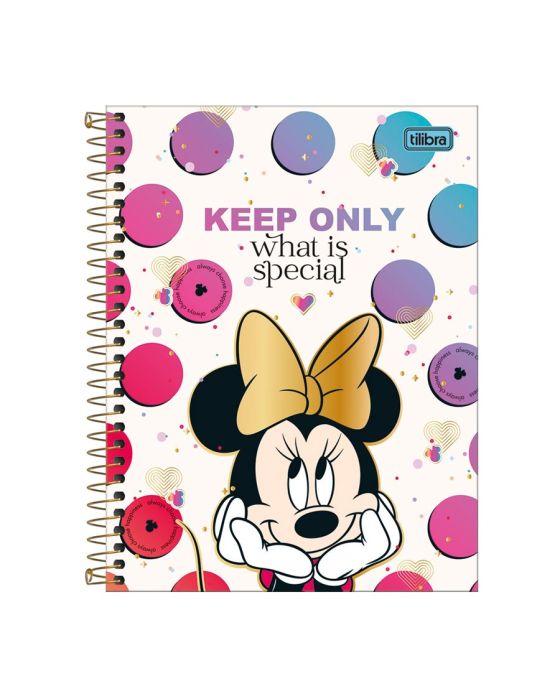 Características:O Caderno Espiral Capa Dura Colegial 1 Matéria Minnie 80 Folhas possui formato inovador e compacto, ideal para quem gosta de praticidade. Possui capa dura com a parte interna decorada, bolsa de papel decorada, folha com adesivos funcionais e folhas pautadas decoradas destacáveis.Detalhes:- Marca: Tilibra;- Modelo: Minnie;- Referência: 294632;- Linha: Cadernos Espiral;- Tipo: Colegial;- Capa: Capa com detalhe metalizado (Estampas sortidas);- Contra capa: Contra capa decorada;- Quantidade de folhas: 80 folhas;- Quantidade de matérias: 1 matéria;- Contém: 1 unidade do produto com 80 folhas;- Formato: 177 x 240mm (17,7 x 24cm);- Gramatura: 56g/m2;- Espiral: Dourado;- Folhas: pautadas decoradas e destacáveis;- Bolsa de papel dupla decorada;- Possui uma cartela de adesivos funcionais;- Índice/separador de matérias decorados;- Miolo;- Produto certificado: FSC.Medidas:- Dimensões do produto: 177 x 240mm (17,7 x 24cm);- Gramatura: 56g/m2.Estampas sortidas, será enviado de acordo com a disponibilidade do estoque. Não é possível escolher uma estampa específica.* As especificações podem ser alteradas sem aviso prévio ** Imagem meramente ilustrativa