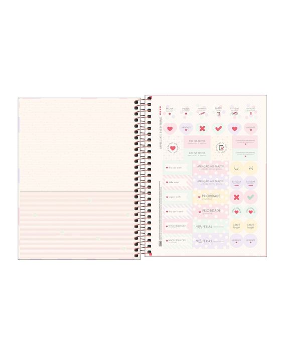 Características:O Caderno Espiral Capa Dura Colegial 1 Matéria Soho 80 Folhas possui formato inovador e compacto, ideal para quem gosta de praticidade. Possui capa dura com detalhe metalizado, parte interna decorada, bolsa de papel decorada, folha com adesivos funcionais e folhas pautadas destacáveis.Características:O Caderno Espiral Capa Dura Colegial 1 Matéria Soho 80 Folhas possui formato inovador e compacto, ideal para quem gosta de praticidade. Possui capa dura com detalhe metalizado, parte interna decorada, bolsa de papel decorada, folha com adesivos funcionais e folhas pautadas destacáveis.Detalhes:- Marca: Tilibra;- Modelo: Soho;- Referência: 291366;- Linha: Cadernos Espiral;- Tipo: Colegial;- Capa: Capa com detalhe metalizado e com relevo (Estampas sortidas);- Contra capa: Contra capa decorada;- Quantidade de folhas: 80 folhas;- Quantidade de matérias: 1 matéria;- Contém: 1 unidade do produto com 80 folhas;- Formato: 177 x 240mm (17,7 x 24cm);- Gramatura: 56g/m2;- Cor Espiral: Dourado;- Folhas: pautadas decoradas e destacáveis;- Bolsa de papel dupla decorada;- Possui uma cartela de adesivos funcionais;- Índice/separador de matérias decorados;- Miolo;- Produto certificado: FSC.Composição; - Capa: Capa em papelão e papel couché;- Folhas Internas: Papel Offset 56g/m2.Medidas:- Formato: 177 x 240mm (17,7 x 24cm);- Gramatura: 56g/m². Capas sortidas, será enviado de acordo com a disponibilidade do estoque. Não é possível escolher uma capa específica.* As especificações podem ser alteradas sem aviso prévio ** Imagem meramente ilustrativa.