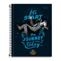 A linha Magic Trip 2025 traz uma grande novidade: o caderno universitário espiral de cor predominantemente preta. É perfeito para o uso diário, ele vem com bolsa portfólio, cartela de adesivos, editorial para dados pessoais, divisórias de matérias, além de miolo com microsserrilhas. Uma escolha imperdível que vai conquistar você.