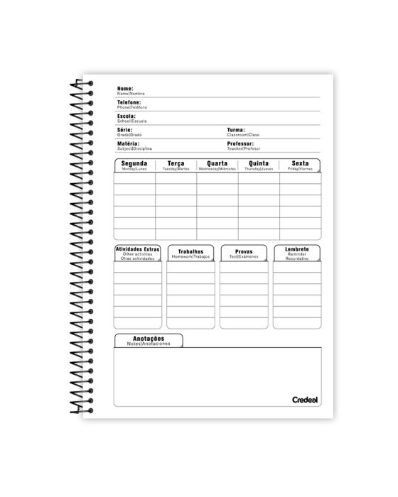 Caracteristicas:Seja na escola ou na faculdade, são muitas disciplinas que fazem parte da vida dos estudantes e ter um único caderno traz praticidade e agilidade, com 10 matérias, você organiza todas as matérias em um só caderno!Detalhes:- Marca: Credeal.- Modelo: Universitário.- Capa dura: Capa dura preta com laminação brilho.- Contra capa: Contra capa simples.- Gramatura: 56g/m².- Formato: 200 x 275mm (20 x 27,5cm).- Quantidade folhas: 160 folhas.- Contém: 1 unidade do produto com 160 folhas.- Matérias: 10 Matérias..- Espiral: Preta.- Índice/separador de matérias com espaço para dados pessoais e anotações.- Pauta preta.- Produto certificado: FSC.* As especificações podem ser alteradas sem aviso prévio ** Imagem meramente ilustrativa.