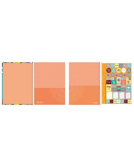 Caracteristicas:A mistura especialmente combinada de cores vibrantes, traços abstratos, florais e com inspirações indianas, deixam os produtos da linha MOOD atuais e alegres.Uma linha que traduz as maiores tendências fashionistas.- Capas com 4 estampas sortidas- 1 matéria com 96fls- Laminação fosca- Espiral dourado- Divisória Decorada- Guarda Decorada- Bolsa de papel- Hot Stamping- Adesivos- Pauta e divisórias decoradas- Verniz Reserva- Formato: 200 x 275 mmCapas sortidas, será enviado de acordo com a disponibilidade do estoque. Não é possível escolher uma capa específica.* As especificações podem ser alteradas sem aviso prévio ** Imagem meramente ilustrativa.