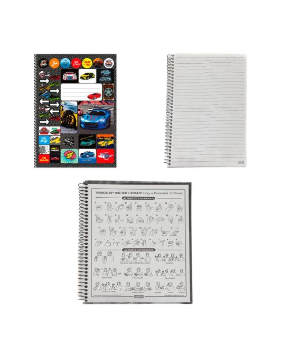 Caracteristicas:- Capa dura (4 estampas sortidas)- 1 matéria- 80 folhas - Gramatura: 56g/m2- Formato: 200 x 275 mm- Pauta cinza - Espiral Preta- Folha de adesivos- Contra capa com alfabeto e expressões em librasCapas sortidas, será enviado de acordo com a disponibilidade do estoque. Não é possível escolher uma capa específica.* As especificações podem ser alteradas sem aviso prévio ** Imagem meramente ilustrativa