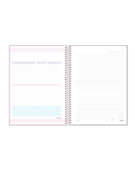 Características:O Caderno Universitário Capa PP Fluor Mix Soft traz cores pastéis que são tendências o ano todo, modernidade e leveza - carrega consigo um design clean e sutil.Detalhes:- Marca: Foroni;- Modelo: Fluor Mix Soft;- Referência: 3162698;- Linha: Cadernos Espiral;- Tipo: Universitário;- Capa: Capa flexível em polipropileno (Estampas sortidas);- Contra capa: Contra capa simples;- Quantidade de folhas: 80 folhas;- Quantidade de matérias: 1 matéria;- Contém: 1 unidade do produto com 80 folhas;- Formato: 200 x 275mm (20 x 27,5cm);- Gramatura: 56g/m2;- Espiral: Branca;- Folhas: pautadas cinza decorada;- Fechamento: Elástico na cor prata;- Possui bolsa plástica transparente;- Índice/separador de matérias decorado;- Miolo;- Produto certificado: FSC.Composição:- Capa: Fabricado em polipropileno e papelão;- Folhas Internas: Papel Offset 56g/m2.Medidas:- Dimensões do produto: 200 x 275mm (20 x 27,5cm);- Gramatura: 56g/m2.Estampas sortidas, será enviado de acordo com a disponibilidade do estoque. Não é possível escolher uma estampa específica.* As especificações podem ser alteradas sem aviso prévio ** Imagem meramente ilustrativa.