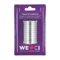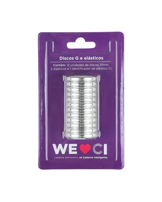 Características:Mude as cores dos discos e do elástico do seu Caderno Inteligente®, deixando-o sempre com cara de novo! ;)Detalhes:- Marca: Caderno Inteligente;- Referência: CI312010;- Linha: Discos G;- Cor: Prata/Incolor;- Contém: 1 embalagem com 12 unidade do produto, 1 elástico e 1 Pin;- Compatível com todos os produtos e acessórios Caderno inteligente;- Tamanho dos discos: 31mm (3,1cm);- Fácil de colocar e retirar;- Produto atóxico;- Produto original.Indústria brasileira. | Validade: Indeterminada.Modo de troca dos discos:- Retire os discos que acompanham o Caderno Inteligente;- Coloque os novos discos da sua preferência no seu Caderno Inteligente;- Encaixe as folhas novamente;- Está pronto para arrasar.Acompanha:- 12 discos na cor prata;- 2 elásticos na cor prata;- 1 identificador de elástico CI.Composição:- Fabricado em ABS, poliéster, elastano e Látex.Medidas:- Dimensões do da embalagem: 14,5 x 9,1 x 3,5cm (CxLxA);- Peso: 149g.* Por se tratar de um produto artesanal, a tonalidade pode variar.ATENÇÃO! NÃO RECOMENDÁVEL PARA CRIANÇAS DE ATÉ 3 (TRÊS) ANOS POR CONTER PARTE(S) PEQUENA(S) QUE PODEM SER ENGOLIDA(S) OU ASPIRADA(S). * As especificações podem ser alteradas sem aviso prévio ** Imagem meramente ilustrativa.