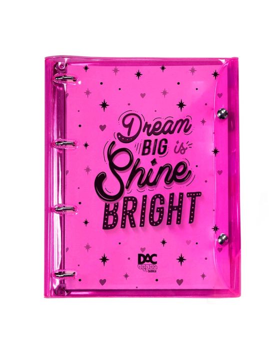 Características:O Fichário Bubble é um sucesso em vendas pela sua inovação, estilo e praticidade. Ele é um boa alternativa para quem quer o tamanho de um caderno, mas gostaria da versatilidade ao inserir ou retirar folhas, pois as argolas articuladas abrem, possibilitando esta ação.Útil e estiloso, foi feito para arrasar! Pronto para escola ou faculdade.Detalhes:- Marca: DAC;- Modelo: Color Bubble;- Referência: 3866;- Linha: Fichário;- Cor: Rosa;- Formato: 223 x 275mm (22,3 x 27,5cm);- Tamanho: Universitário;- Quantidade de folhas: 192 folhas; - Contém: 1 unidade do produto com 192 folhas;- Argolas: 4 argolas;- Fechamento: Em botão;- Placa em plástico rígido para estruturação;- 10 divisórias plásticas;- Material de fácil limpeza.Composição:- PVC Cristal.Medida:- Dimensões: 22,3 x 27,5cm (CxL);* As especificações podem ser alteradas sem aviso prévio ** Imagem meramente ilustrativa.