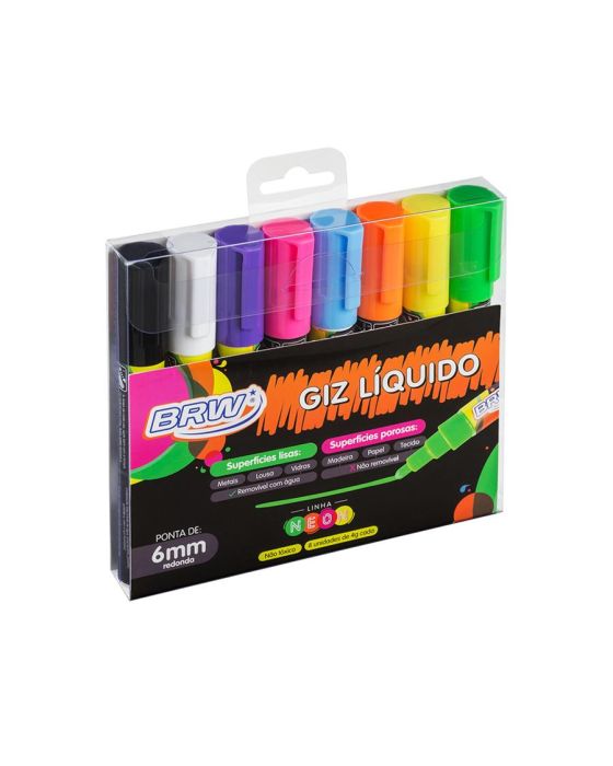 Caracteristicas:- Giz Líquido ideal para quadro negro, vidros, plásticos e outras superfícies lisas- Marcador multiuso- Removível com água em superfícies lisas: Metais, Lousa, Vidros- Não removível em superfícies porosas: Madeira, Papel, Tecido- Ótima opacidade - Ponta redonda de 6mm- Tinta à base de água- Para escrever basta agitar a caneta, e pressionar a ponta até que a tinta preencha toda a ponta- Cores: branco, preto, azul, amarelo, rosa, laranja, lilás e verde- Pintura ficou falhada? Basta sobrepor a cor, pinte por cima quantas vezes quiser* As especificações podem ser alteradas sem aviso prévio ** Imagem meramente ilustrativa.