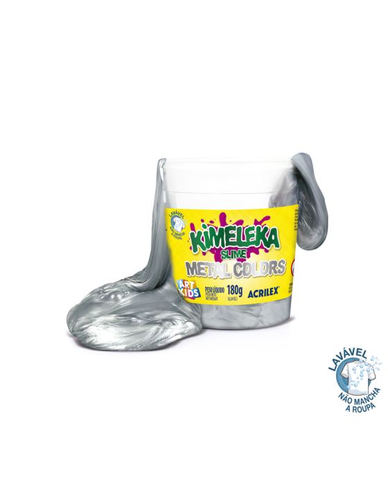 Caracteristicas: A Kimeleka Slime Metal Colors Acrilex é ideal para divertir e desenvolver a criatividade das crianças. O produto é lavável e não mancha as roupas, garantindo assim a diversão das crianças e a tranquilidade dos pais!Detalhes:- Marca: Acrilex.- Modelo: Kimeleka Slime.- Referência: 05832.- Linha: Slime.- Cores: Prata, Ouro, Verde Metálico, Azul Metálico, Rosa Metálico e Violeta Metálico (Cores sortidas).- Volume/Peso: 180g.- Contém: 1 unidade do produto.- Lavável.- Não tóxica.- Não mancha as roupas.- Pronta para uso.- Usar somente em superfícies limpas.- Diverte e desenvolve a criatividade.Composição:- Água, glicerina, espessantes, conservantes, corantes e pigmentos metálicos.Cores sortidas, será enviado de acordo com a disponibilidade do estoque. Não é possível escolher uma cor específica.* As especificações podem ser alteradas sem aviso prévio ** Imagem meramente ilustrativa