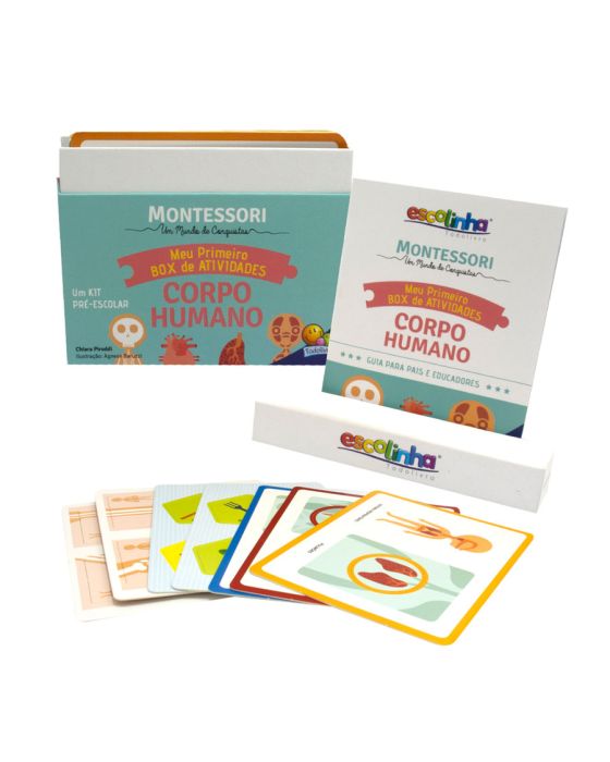 Caracteristicas:Seguindo os princípios e Método Montessori, que valoriza a criatividade e a liberdade de escolha no aprendizado, os cartões deste BOX são especialmente elaborados para estimular as habilidades cognitivas da criança em fase pré-escolar, podendo ser manuseados de forma autônoma, ou seja, sem necessidade de intervenção didática de um adulto. Instigada pela sua curiosidade, a ciança vai desenvolver as habilidades necessárias para construir umfundamento sólido nos conceitos iniciais da anatomia humana e de como cada sistema do corpo e dos órgãoes vitais funciona.- Habilidades desenvolvidas PRIMEIRO APRENDIZADO COORDENAÇÃO MOTORA HABILIDADES COGNITIVAS Descrição do Livro- Formato: 12,5x15,8 cm x 17x13 cm - Páginas: 16- Faixa Etária: A partir de 3 anos- Acabamento: Box com livro brochura e cartões destacáveis* As especificações podem ser alteradas sem aviso prévio ** Imagem meramente ilustrativa