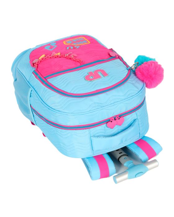Características:Chegou a mochila dos seus sonhos! A Mochila com Carrinho Turquesa UP4YOU é perfeita para quem adora aliar funcionalidade e muito estilo. Com um design moderno e super descolado, ela vem nas cores azul e rosa, criando uma combinação vibrante e cheia de energia. O charme fica por conta do chaveiro pompom na cor rosa, que traz um toque extra de fofura, e dos detalhes que fazem toda a diferença no visual, garantindo que você arrase por onde passar. E não para por aí: a mochila possui rodinhas com luzinhas, que são não só práticas, mas também um verdadeiro show à parte!Funcionalidade? Tem de sobra! Com 5 bolsos, você pode organizar tudo de maneira fácil e prática, desde seus materiais escolares até pequenos acessórios. O compartimento para notebook garante que seu aparelho fique seguro e protegido, enquanto a presilha ajuda a manter tudo no lugar.Detalhes:- Marca: Luxcel;- Modelo: UP4YOU;- Referência: MC49172UPAZ;- Linha: Mochilas;- Tipo: Carrinho;- Cor: Azul com detalhes em rosa;- Quantidade de bolsos: 5 bolsos;- Compartimento para notebook: Até 17 polegadas;- Capacidade: Aproximadamente 33 litros;- Contém: 1 unidade do produto;- Fechamento: Zíper;- Acompanha: Chaveiro em forma de pompom na cor rosa;- Alça retrátil com trava e dobrável;- Zíper personalizado no formato de coração na cor rosa;- São 4 rodas para melhor performance;- Rodas com luz de LED coloridas;- Alças reguláveis com bolsa para guarda-las quando não for carregar nas costas;- Presilha para prender os cadernos ou itens maiores e não ficarem soltas na mochila;- Maior espaço de armazenamento.Fabricado na China.Bolsos:- 1 bolso principal superior;- 1 bolso médio frontal;- 1 bolso pequeno frontal;- 2 bolsos laterais telados;- 1 bolso traseiro.Composição:- Material mochila: 100% Poliéster;- Forro: 100% Poliéster.Recomendações:- Evite carga excessiva de objetos para assim manter as ótimas condições de uso e durabilidade do estojo;- Limpar com pano seco ou levemente umedecido;- Não lavar, não alvejar, não secar em tambor, não passar e não lavar a seco;- Teme químicos e abrasivos;- Não deixar de molho.Medidas:- Dimensões do produto com alça retrátil: 78 x 32 x 22cm (AxCxP);- Dimensões do produto sem alça retrátil: 56 x 32 x 22cm (AxCxP);- Peso: 570g.Garantia do fornecedor: 6 Meses contra defeitos de fabricação.* As especificações podem ser alteradas sem aviso prévio ** Imagem meramente ilustrativa.
