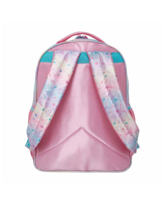 Características:A Mochila Costas Pacific Pack Me Wings é a escolha ideal para quem busca estilo, conforto e funcionalidade. Com uma impressionante capacidade de 20 litros, essa mochila oferece amplo espaço para acomodar livros, materiais escolares e objetos pessoais. Sua combinação de rosa, lilás e verde, com detalhes metalizados e glitter, cria um visual moderno e encantador, perfeito para quem ama um toque de brilho.A mochila conta com 4 bolsos espaçosos e zíperes personalizados nas cores rosa e verde água, garantindo organização e praticidade. O destaque fica por conta da estampa frontal, com uma borboleta que ao se mexer irá balançar as asinhas trazendo um charme extra à peça, além de possuir um chaveiro chaveiro com lantejoulas verdes super charmoso completando o visual único e divertido. Detalhes:- Marca: Pacific;- Modelo: Pack Me Wings;- Referência: 998BB04;- Linha: Mochilas;- Tipo: Costas;- Cor: Rosa com detalhes em lilás, verde e detalhes metalizados;- Cor do forro: Rosa;- Quantidade de bolsos: 4 bolsos;- Capacidade: Aproximadamente 20 litros;- Contém: 1 unidade do produto;- Fechamento: Zíper;- Alças reforçadas e acolchoadas;- Possui alça de transporte acolchoada e reforçada para as mãos na cor rosa;- Possui chaveiro personalizado com lantejoulas na cor verde;- Conta com estampa frontal detalhes metalizados e a representação de uma borboleta a sua volta;- detalhes em glitter;- Zípers personalizados na cor rosa e verde água;- Produto original e licenciado.Fabricado na China | Validade: Indeterminada.Bolsos:- 1 bolso principal superior;- 1 bolso médio frontal;- 2 bolsos laterais telados.Composição:- Material mochila: 66% Poliéster e 34% PVC;- Forro: 100% PoliésterRecomendações:- Evite carga excessiva de objetos para assim manter as ótimas condições de uso e durabilidade da mochila;- Limpar com pano seco ou levemente umedecido;- Não lavar, não alvejar, não secar em tambor, não passar e não lavar a seco;- Teme químicos e abrasivos;- Não deixar de molho.Medidas:- Dimensões do produto: 41 x 30,3 x 16,5 (AxCxP);- Peso: 195g.Garantia do fornecedor: 3 Meses contra defeitos de fabricação.* As especificações podem ser alteradas sem aviso prévio ** Imagem meramente ilustrativa.