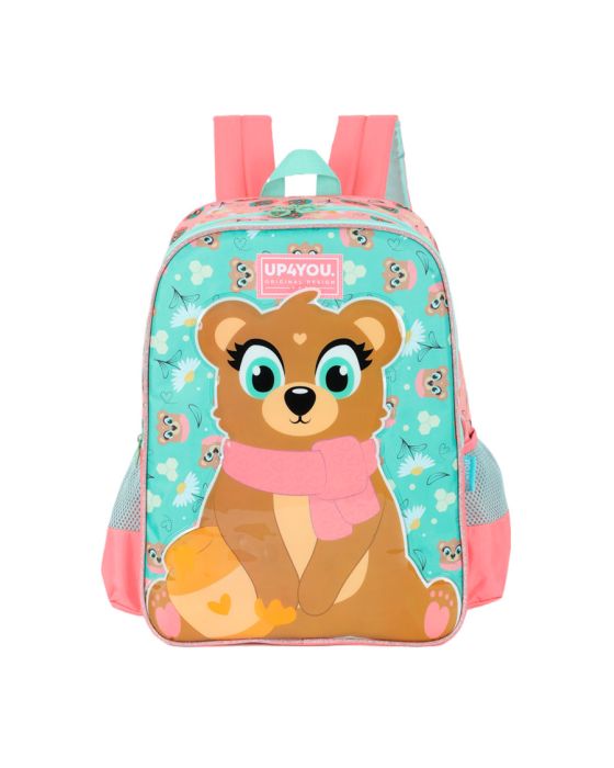 Mochilas:A Mochila Costas Ursinho Up4You é perfeita para as crianças irem para a escola em grande estilo e personalidade! A Ursinha mais fofa estampa a frente da mochila para arrasar pelo caminho, e possui 4 bolsos para se organizar de forma prática e eficiente, são aproximadamente 19 litros para acomodar todos os seus itens, sendo perfeita para carregar todo o seu material escolar do dia a dia, além de possuir alças ajustáveis e acolchoadas oferecendo conforto na hora de carregar a mochila.Detalhes:- Marca: Luxcel;- Modelo: Up4You UrsinhO;- Referência: IS41031UP-AZ;- Linha: Mochilas;- Tipo: Costas;- Cor: Verde com detalhes em rosa metalizado e salmão;- Quantidade de bolsos: 4 bolsos;- Capacidade: Aproximadamente 19 litros;- Contém: 1 unidade do produto;- Fechamento: Zíper;- Alças reguláveis e acolchoadas;- Possui chaveiro personalizado em formato de coração na cor VERDE;- Campo para identificação do aluno na traseira.Fabricado na China | Validade: Indeterminada.Bolsos:- 2 bolso principal superior;- 2 bolsos laterais telados.Espaço para identificação, campos:- Nome;- Endereço;- Série e Turma;- Telefone.Composição:- Material mochila: 70% Poliéster e 30% PVC;- Forro: 100% Poliéster.Recomendações:- Evite carga excessiva de objetos para assim manter as ótimas condições de uso e durabilidade do estojo;- Limpar com pano seco ou levemente umedecido;- Não lavar, não alvejar, não secar em tambor, não passar e não lavar a seco;- Teme químicos e abrasivos;- Não deixar de molho.Medidas:- Dimensões do produto: 40,5 x 29 x 16cm (AxCxP);- Peso: 200g.Garantia do fornecedor: 6 Meses contra defeitos de fabricação.* As especificações podem ser alteradas sem aviso prévio ** Imagem meramente ilustrativa.