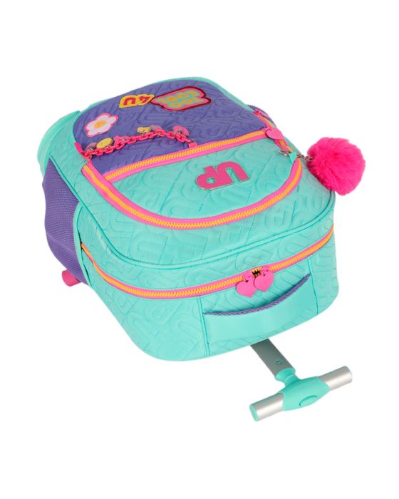 Características:Chegou a mochila dos seus sonhos! A Mochila com Carrinho Turquesa UP4YOU é perfeita para quem adora aliar funcionalidade e muito estilo. Com um design moderno e super descolado, ela vem nas cores turquesa e roxa, criando uma combinação vibrante e cheia de energia. O charme fica por conta do chaveiro pompom na cor rosa, que traz um toque extra de fofura, e dos detalhes que fazem toda a diferença no visual, garantindo que você arrase por onde passar. E não para por aí: a mochila possui rodinhas com luzinhas, que são não só práticas, mas também um verdadeiro show à parte!Funcionalidade? Tem de sobra! Com 5 bolsos, você pode organizar tudo de maneira fácil e prática, desde seus materiais escolares até pequenos acessórios. O compartimento para notebook garante que seu aparelho fique seguro e protegido, enquanto a presilha ajuda a manter tudo no lugar.Detalhes:- Marca: Luxcel;- Modelo: UP4YOU;- Referência: MC49172UPTQ;- Linha: Mochilas;- Tipo: Carrinho;- Cor: Turquesa com detalhes em roxo e rosa;- Quantidade de bolsos: 5 bolsos;- Compartimento para notebook: Até 17 polegadas;- Capacidade: Aproximadamente 33 litros;- Contém: 1 unidade do produto;- Fechamento: Zíper;- Acompanha: Chaveiro em forma de pompom na cor rosa;- Alça retrátil com trava e dobrável;- Zíper personalizado no formato de coração na cor rosa;- São 4 rodas para melhor performance;- Rodas com luz de LED coloridas;- Alças reguláveis com bolsa para guarda-las quando não for carregar nas costas;- Presilha para prender os cadernos ou itens maiores e não ficarem soltas na mochila;- Maior espaço de armazenamento.Fabricado na China.Bolsos:- 1 bolso principal superior;- 1 bolso médio frontal;- 1 bolso pequeno frontal;- 2 bolsos laterais telados;- 1 bolso traseiro.Composição:- Material mochila: 100% Poliéster;- Forro: 100% Poliéster.Recomendações:- Evite carga excessiva de objetos para assim manter as ótimas condições de uso e durabilidade do estojo;- Limpar com pano seco ou levemente umedecido;- Não lavar, não alvejar, não secar em tambor, não passar e não lavar a seco;- Teme químicos e abrasivos;- Não deixar de molho.Medidas:- Dimensões do produto com alça retrátil: 78 x 32 x 22cm (AxCxP);- Dimensões do produto sem alça retrátil: 56 x 32 x 22cm (AxCxP);- Peso: 570g.Garantia do fornecedor: 6 Meses contra defeitos de fabricação.* As especificações podem ser alteradas sem aviso prévio ** Imagem meramente ilustrativa.