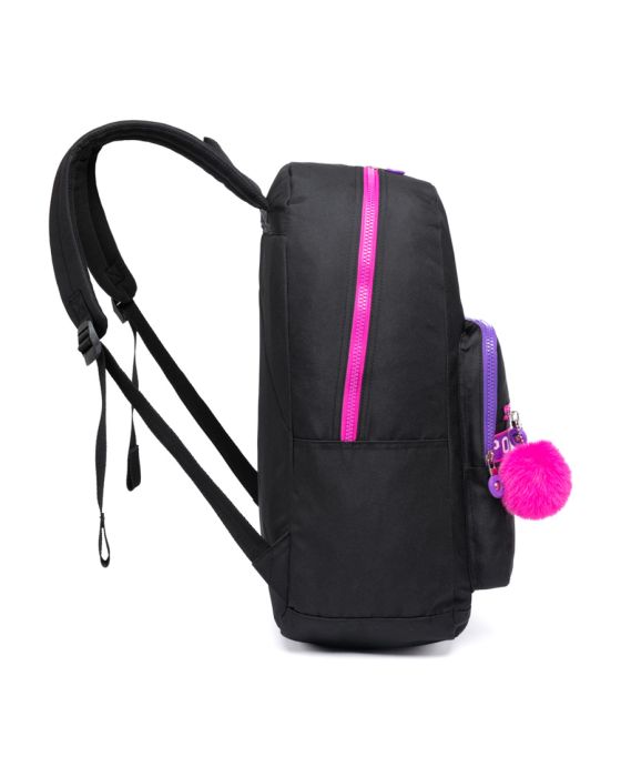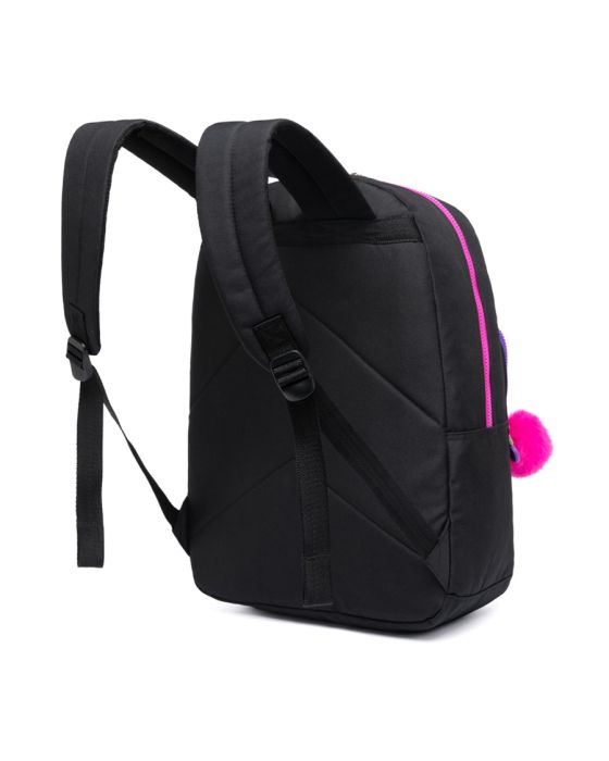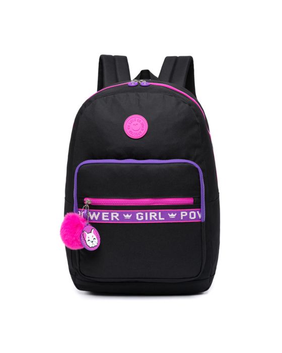 Características:A Mochila Costas Spector Girl Power Preto/Rosa Nytron possui um design moderno, colorido e alto-astral e é perfeita para as meninas que gostam de estilo e funcionalidade, já que são 3 bolsos em tamanhos suficientes para guardar todos os itens necessários para o seu dia a dia.Detalhes:- Marca: Nytron;- Modelo: Spector Girl Power;- Referência: SP3130;- Linha: Mochilas Escolares;- Tipo: Costas;- Capacidade: 20L;- Cor: Preta com detalhes em rosa e lilás;- Tamanho: Único;- Quantidade de bolsos: 4 bolsos;- Contém: 1 unidade do produto;- Fechamento: Zíper;- Possui Zíper coloridos personalizados em plástico e metal na cor rosa;- Possui alça para transporte na cor preta;- Possui alça acolchoadas ajustável para as costas;- Possui chaveiros com formato de pompom e com rostinho de cachorrinho.Produto fabricado na República Popular da China.Bolsos:- 1 Bolso principal superior;- 1 Bolso médio frontal;- 1 Bolso pequeno frontal.Composição:- Mochila: Fabricado em 100% poliéster;- Forro: Fabricado em 100% poliéster.Conservação:- Evite carregar excesso de peso;- Embalar objetos com cantos vivos cortantes;- Para limpeza, utilize apenas pano úmido ou esponja macia e sabão neutro;- Conservar em local seco e arejado.Medidas:- Dimensões do produto: 43 x 29,5 x 15cm (AxLxP);- Peso: 340g.Conteúdo da embalagem: Mochila Costas Spector Girl Power Preta/Rosa SP3130 Nytron;* As especificações podem ser alteradas sem aviso prévio ** Imagem meramente ilustrativa.