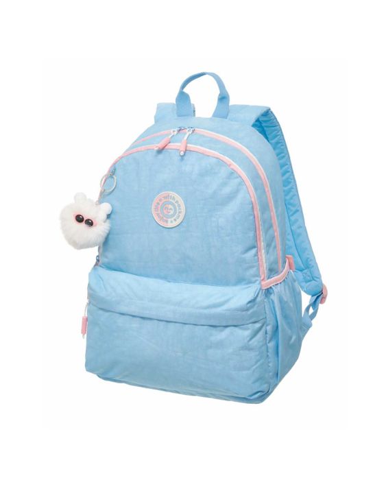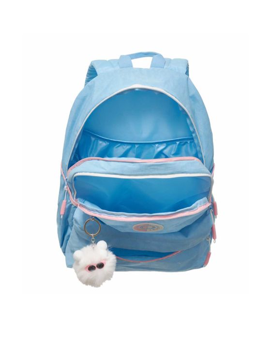 Características:A Mochila Costas Pack Me Life Pacific é a escolha ideal para quem busca estilo, conforto e funcionalidade no dia a dia. Com o modelo Life, ela combina um design moderno com uma estrutura prática e resistente, perfeita para quem precisa de espaço e organização, além de possuir um chaveiro em formato de pompom super fofo que possui até um óculos super estiloso e orelhinhas!Ideal para quem busca uma mochila prática, espaçosa pois são 22 litros para acondicionar todos os seus itens da escola, faculdade, trabalho ou até mesmo passeio e também cheia de personalidade, a Pack Me Life é a escolha perfeita para o seu estilo de vida moderno! Detalhes:- Marca: Pacific;- Modelo: Pack Me Life;- Referência: 798050AM;- Linha: Mochilas;- Tipo: Costas;- Cor: Azul claro com detalhes rosa e branco;- Cor do forro: Azul claro;- Quantidade de bolsos: 5 bolsos;- Compartimento para notebook: Até 17 polegadas;- Capacidade: Aproximadamente 22 litros;- Contém: 1 unidade do produto;- Fechamento: Zíper;- Alças reforçadas e acolchoadas;- Possui alça de transporte;- Acompanha chaveiro em formato de pompom na cor branca com um óculos rosa e com orelhinhas;- Puxadores dos zíperes personalizados na cor branco e rosa;- Produto original e licenciado.Fabricado na China | Validade: Indeterminada.Bolsos:- 2 bolsos principais superiores;- 1 bolso médio frontal- 2 bolsos laterais.Composição:- Material mochila: 100% Nylon;- Forro: 100% Poliéster.Recomendações:- Evite carga excessiva de objetos para assim manter as ótimas condições de uso e durabilidade da mochila;- Limpar com pano seco ou levemente umedecido;- Não lavar, não alvejar, não secar em tambor, não passar e não lavar a seco;- Teme químicos e abrasivos;- Não deixar de molho.Medidas:- Dimensões do produto: 43 x 29,2 x 17,7cm (AxCxP);- Peso: 358g.Garantia do fornecedor: 3 Meses contra defeitos de fabricação.* As especificações podem ser alteradas sem aviso prévio ** Imagem meramente ilustrativa.
