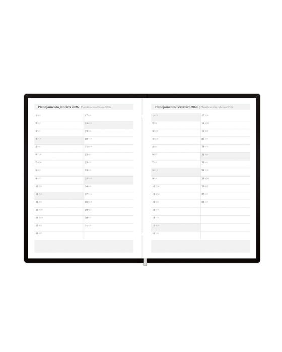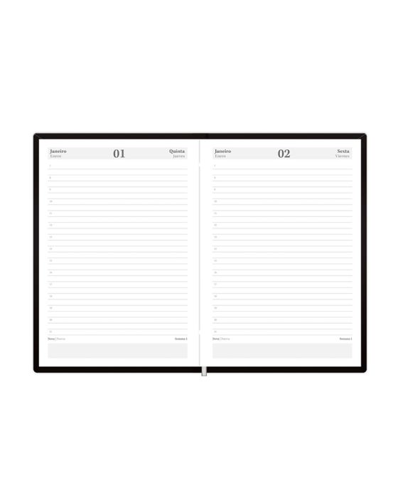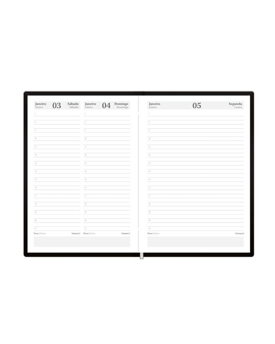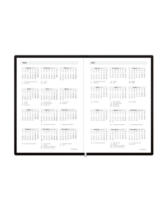 Características:- Elegância e funcionalidade para o ambiente corporativo: A Agenda 2026 Diária Executiva Capri Preta Foroni 7603 foi desenvolvida para profissionais e empresas que valorizam organização, estilo e eficiência no planejamento das rotinas de trabalho. Seu formato compacto de 13,5 x 19,2 cm é ideal para o uso diário em escritórios, consultorias, departamentos administrativos e cargos executivos, garantindo praticidade na anotação de compromissos, metas e planejamentos estratégicos.- Design sofisticado com acabamento premium: A coleção Capri se destaca pela capa preta em material sintético almofadado, que combina resistência, toque suave e aparência elegante. Seu acabamento costurado reforça a durabilidade e transmite uma imagem profissional e refinada, ideal para o ambiente corporativo. O fitilho marcador de página proporciona praticidade, permitindo o acesso rápido ao dia desejado.- Planejamento completo e visão organizada do ano: Projetada para oferecer controle total da rotina e acompanhamento eficiente de tarefas e metas, a agenda apresenta visão diária datada (1 dia por página, exceto fins de semana), facilitando o registro detalhado de atividades, reuniões e compromissos. O miolo bilíngue (Português e Espanhol) amplia a usabilidade em contextos corporativos internacionais. Inclui páginas específicas para dados pessoais e comerciais, feriados internacionais, calendários de 2026 e 2027, planejamento mensal, controle financeiro, definição de objetivos e anotações, tornando-se uma ferramenta completa de gestão de tempo e produtividade.- Qualidade e durabilidade para o uso profissional: Com 176 folhas de gramatura 56 g/m² e miolo costurado, a agenda oferece resistência superior e escrita confortável, ideal para uso contínuo durante o ano inteiro. O papel de alta qualidade garante escrita limpa e sem vazamento de tinta, proporcionando uma experiência agradável e profissional em qualquer ambiente de trabalho.- Marca referência em papelaria de qualidade: A Foroni é uma das marcas mais tradicionais do mercado brasileiro de papelaria, reconhecida por desenvolver produtos que combinam design moderno, resistência e funcionalidade.- Dimensões do produto:Comprimento:19,8cm; Largura: 14,2cm; Altura: 2cm; Peso: 352g.* As especificações podem ser alteradas sem aviso prévio ** Imagem meramente ilustrativa.