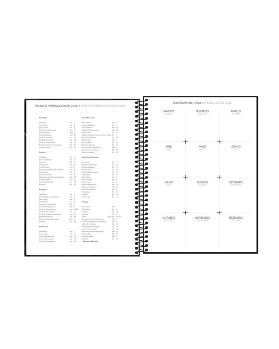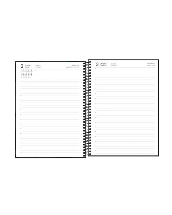 Características:- Planejamento diário detalhado e profissional: Agenda diária com 200 folhas, projetada para atender às necessidades de organização de profissionais e empresas que demandam registro preciso de compromissos. O formato amplo de 20 x 27,5 cm proporciona espaço adequado para anotações extensas, com pauta de horários das 7h às 22h, permitindo um controle completo das atividades diárias.- Construção robusta e acabamento sofisticado: Capa dura fabricada em papelão e papel couchê, com laminação fosca e detalhes em brilho, conferindo resistência e um visual moderno. A contra capa decorada complementa o design, disponível em estampas sortidas na cor preta com detalhes verdes ou preta com detalhes azuis, adequando-se a diferentes perfis e ambientes de uso.- Conteúdo interno funcional: Possui 1 bolsa plástica para armazenar documentos soltos, 1 folha para dados pessoais, 2 folhas de calendário (2026/2027), 2 folhas de feriados internacionais, 2 folhas para planejamento anual 2026, 181 folhas diárias com calendário no topo e marcação de horários, 10 folhas pautadas para anotações e 2 folhas quadriculadas. Encadernação em espiral metálica que permite abertura total, facilitando a escrita.- Qualidade e responsabilidade ambiental: Miolo produzido em papel offset 63 g/m² com certificação FSC, assegurando que a matéria-prima é proveniente de manejo florestal responsável. Estrutura desenvolvida para suportar uso intenso durante todo o ano, mantendo legibilidade e integridade das páginas.- Excelência da marca Tilibra: Com longa trajetória no mercado nacional, a Tilibra é referência em papelaria de alta qualidade, combinando design, funcionalidade e durabilidade em produtos que atendem demandas profissionais, escolares e pessoais.- Dimensões do produto:Comprimento: 27,5cm;Largura: 22cm;Altura: 3cm;Peso: 832g.Estampas sortidas, será enviado de acordo com a disponibilidade do estoque. Não é possível escolher uma estampas específica.* As especificações podem ser alteradas sem aviso prévio ** Imagem meramente ilustrativa.