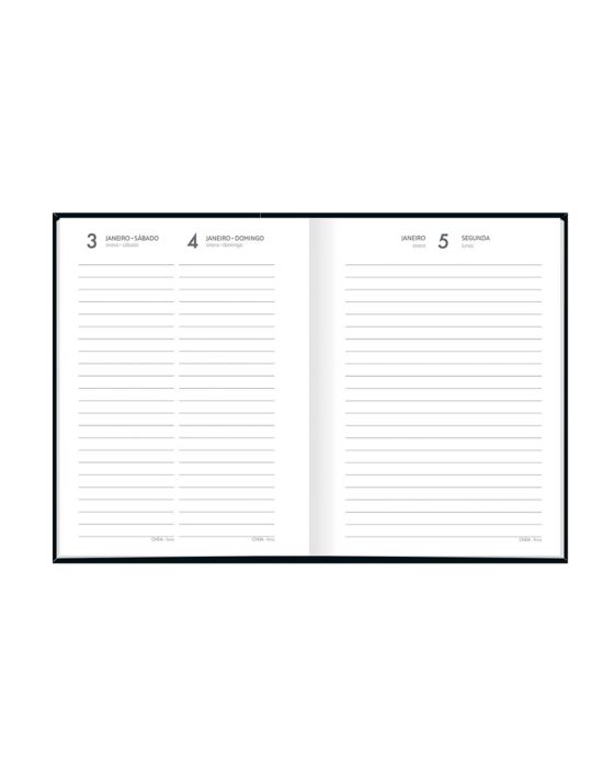 Características:- Planejamento diário com praticidade e formato compacto: A Agenda Diária Executiva Pepper 2026 da Tilibra é uma opção ideal para quem busca uma ferramenta funcional, discreta e portátil para a organização da rotina pessoal ou profissional. Com dimensões reduzidas (12,3 x 16,6 cm), oferece visão de um dia por página (exceto fins de semana), com pautas horárias das 7h às 18h, permitindo anotações objetivas e planejamento ágil das tarefas diárias.- Conteúdo essencial para uso prático e direto: A agenda conta com 160 folhas em papel offset 63 g/m², distribuídas em seções bem definidas para uso funcional: dados pessoais, calendário anual, feriados internacionais e espaço para anotações. Com 155 páginas destinadas ao planejamento diário, a diagramação foi pensada para quem precisa registrar compromissos de forma rápida, mantendo clareza e foco na produtividade.- Design moderno e acabamento durável: Sua capa dura com laminação brilhante e relevo oferece resistência ao uso contínuo e um visual moderno e elegante. A encadernação costurada assegura maior durabilidade e estabilidade das páginas, mesmo com manuseio frequente. As folhas internas são pautadas e acompanham a tonalidade preta da proposta visual, mantendo uniformidade no design.- Responsabilidade ambiental e qualidade reconhecida: A Pepper é produzida com papel certificado FSC, garantindo procedência responsável e compromisso ambiental. A gramatura de 63 g/m² proporciona escrita suave com diferentes tipos de caneta, sem risco de vazamentos ou marcas no verso da folha.- Tilibra: Reconhecida pela excelência em papelaria e produtos para organização, é referência nacional em agendas, cadernos e materiais escolares e corporativos.- Dimensões do produto:Comprimento: 17,9cm;Largura: 12,9cm;Altura: 1,7cm;Peso: 262g.* As especificações podem ser alteradas sem aviso prévio ** Imagem meramente ilustrativa.