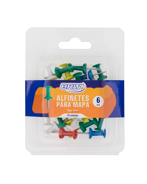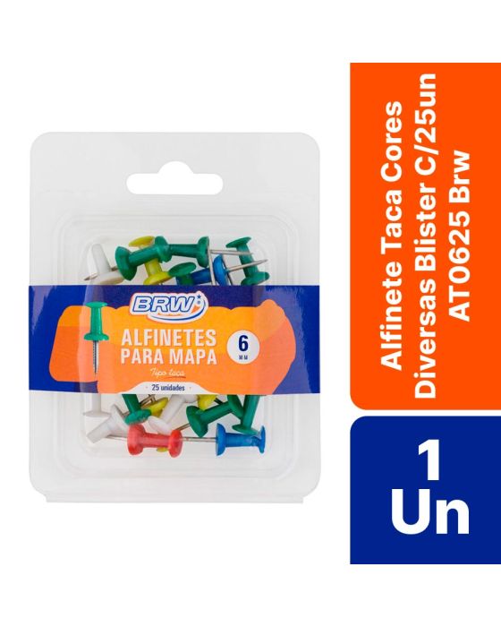 Características:O Alfinete Para Mapa Marcador 8mm Tipo Taça Brw para que você consiga organizar seu dia a dia de forma inteligente e prática, o Alfinete Para Mapa é um produto de excelente qualidade que auxilia nas atividades escolares, palestras, seminários e mural.Detalhes:- Marca: BRW;- Modelo: Alfinetes para Mapa;- Referência: AT0625;- Linha: Alfinetes;- Cores: Azul, Amarelo, Branca, Verde, Vermelho e Preto;- Formato: Taça;- Tamanho: 6mm;- Contém: 1 blister com 25 unidades com cores sortidas;- Ideal para organização do dia a dia;- Prático e de qualidade.Ideal para: - Auxiliar nas atividades escolares, palestras, seminários e mural.* As especificações podem ser alteradas sem aviso prévio ** Imagem meramente ilustrativa.