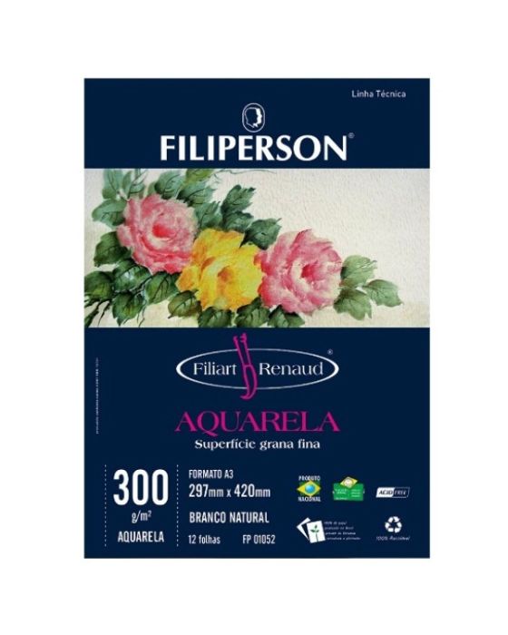 Caracteristicas:BLOCO AQUARELA RENAUD BRANCO FILIPAPER - Formato: A3 - Cor: branca - Quantidade: 12 Folhas - Gramatura de 300g/m². - Fabricante: Filiperson - Linha: Filiart Aquarela - Referência: 01052 * As especificações podem ser alteradas sem aviso prévio ** Imagem meramente ilustrativa