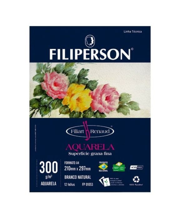 Caracteristicas:BLOCO AQUARELA RENAUD BRANCO FILIPAPER - Formato: A4 - Cor: branca - Quantidade: 12 Folhas - Gramatura de 300g/m². - Fabricante: Filiperson - Linha: Filiart Aquarela - Referência: 01053 * As especificações podem ser alteradas sem aviso prévio ** Imagem meramente ilustrativa