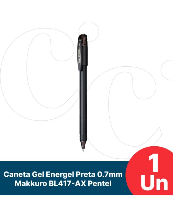 Características:- Caneta gel 0.7 mm com tinta EnerGel de secagem rápida e alto desempenho de escrita: A Caneta Gel EnerGel Preta 0.7 mm Makkuro BL417-AX Pentel foi desenvolvida para proporcionar escrita técnica fluida, traço consistente e rápida fixação da tinta no papel. Utiliza tecnologia de tinta gel EnerGel de baixa viscosidade, que entrega linhas intensas e uniformes com menor risco de falhas e borrões durante o uso contínuo.- Tecnologia EnerGel com secagem acelerada e escrita super suave: A formulação da tinta EnerGel combina alta pigmentação com secagem rápida, reduzindo manchas e transferência característica especialmente relevante para canhotos e para rotinas de anotação intensa. O fluxo é controlado para oferecer maciez no deslizamento da ponta e resposta imediata ao contato com o papel.- Aplicação versátil: Indicada para uso escolar, corporativo e técnico, atende diferentes perfis de usuário. A ponta 0.7 mm gera traço médio definido, adequado para textos, assinaturas, formulários e registros. O corpo preto com design moderno integra a linha Makkuro, com identificação visual objetiva pela cor da tampa correspondente à tinta.- Construção sustentável e design funcional: Produzida com aproximadamente 62% de materiais reciclados, alia desempenho e responsabilidade ambiental. O formato ergonômico favorece o controle de escrita e o conforto em períodos prolongados de uso. - Sobre a marca Pentel: A Pentel é uma marca japonesa com tradição desde 1970 no desenvolvimento de instrumentos de escrita e desenho técnico.- Dimensões do produto: Comprimento: 14,7cm;Largura: 2cm;Altura: 1cm;Peso: 20g.ATENÇÃO! NÃO RECOMENDÁVEL PARA CRIANÇAS DE ATÉ 3 (TRÊS) ANOS, POR CONTER PARTE(S) PEQUENA(S) QUE PODE(M) SER ENGOLIDA(S) OU ASPIRADA(S).* As especificações podem ser alteradas sem aviso prévio ** Imagem meramente ilustrativa.