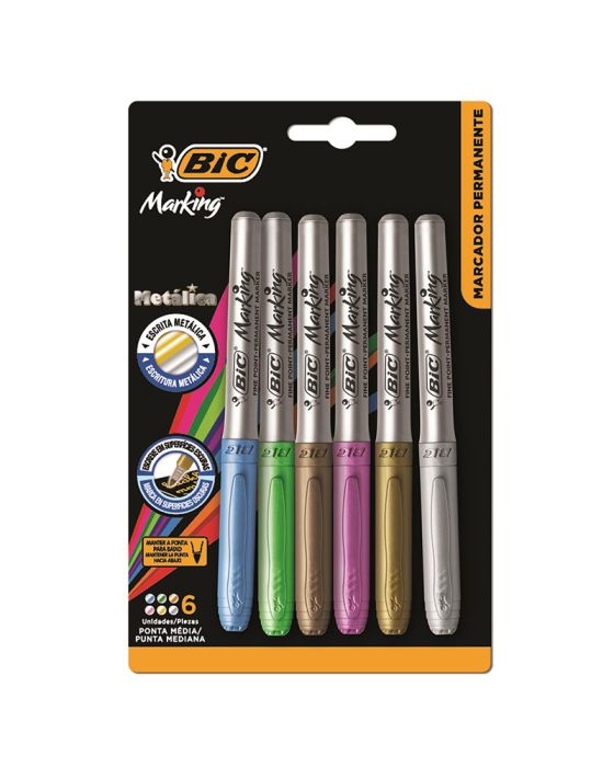 Caneta Marcador Permanente 971035 Bls C/6 Cores Metalicas Bic