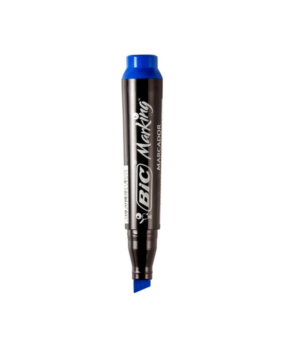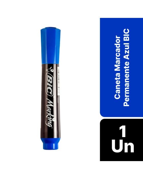 Características:- Desenvolvida para atender com excelência profissionais e usuários exigentes, a Caneta Marcador Permanente BIC Marking Azul é ideal para marcações em superfícies diversas com alta precisão e durabilidade. Sua ponta chanfrada bloqueada permite traços finos ou grossos, variando entre 1,5 mm e 3,0 mm, adaptando-se a diferentes aplicações, desde trabalhos manuais até uso industrial leve. A tinta à base de álcool garante secagem rápida, minimizando riscos de borrões e promovendo um acabamento limpo e profissional.- Desempenho técnico e durabilidade: Projetada com ponta chanfrada de alta resistência, bloqueada para evitar retrações durante o uso, a caneta proporciona maior vida útil e desempenho constante. A versatilidade do traço (1,5 mm a 3,0 mm) atende desde detalhes mais delicados até coberturas maiores, com controle total pelo usuário.- Aplicação em diversas superfícies: Recomendada para marcar papelão, madeira, vidro, plástico, metal, acrílico e porcelana, essa caneta é indicada para uso em escritórios, escolas, ambientes industriais e atividades de artesanato. A tinta permanente fixa com firmeza e mantém legibilidade mesmo em materiais mais desafiadores.- Tinta à base de álcool – secagem rápida e sem borrões: Sua fórmula à base de álcool promove secagem instantânea, tornando o produto ideal para uso contínuo, sem interrupções, e para atividades que demandam precisão e limpeza.- Marca de confiança: A BIC é referência global em soluções de escrita, combinando tradição e inovação em produtos acessíveis e de alta performance.- Dimensões da embalagem:Comprimento: 12cm;Largura: 1,8cm;Altura: 1,8cm;Peso: 18g.ATENÇÃO! NÃO RECOMENDÁVEL PARA CRIANÇAS DE ATÉ 3 (TRÊS) ANOS POR CONTER PARTE(S) PEQUENA(S) QUE PODEM SER ENGOLIDA(S) OU ASPIRADA(S). * As especificações podem ser alteradas sem aviso prévio ** Imagem meramente ilustrativa.